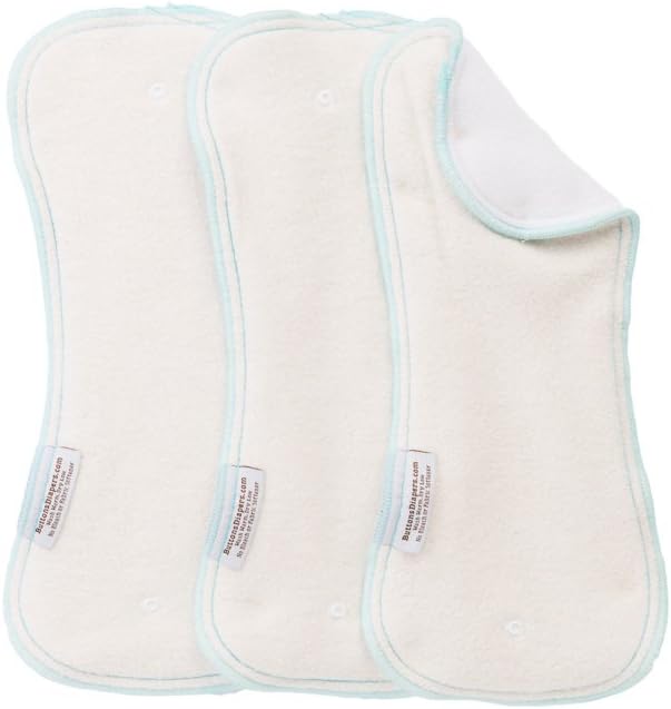 Our Hemp/Cotton Daytime Inserts have 4 layers of premium natural fabric made up of 55% hemp and 45% cotton, and 1 layer of soft fleece on top to wick away moisture and keep baby's skin dry. Buttons cloth inserts snap right into our one-size diapers covers. Plus, they come in 2 sizes for your growing baby (small fits babies 9-20 lbs, large fits babies 20-35 lbs.; Small inserts: light orange stitching; Large inserts: light blue stitching.)