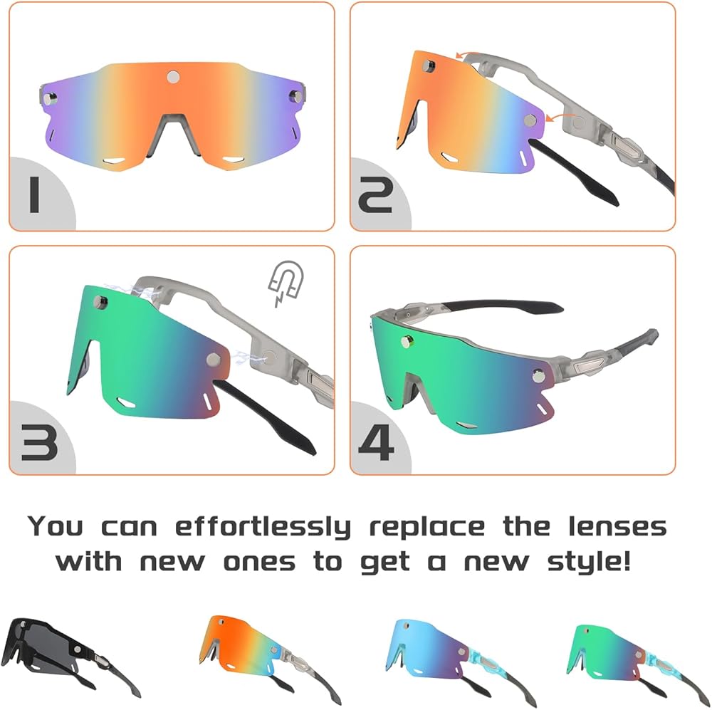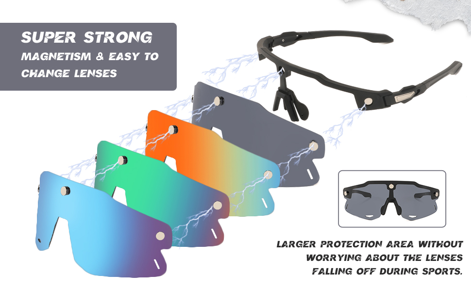 استبدال العدسات بسهولة: كنظارات شمسية مغناطيسية، الميزة الأكبر هي أنه يمكنك استبدال العدسات بحرية للحصول على زوج من نظارات التزلج بأنماط مختلفة. كل ما عليك فعله هو إزالتها، وأخذ عدسة أخرى قريبة من الإطار، وسوف تلتصق العدسة تلقائيًا دون عناء.