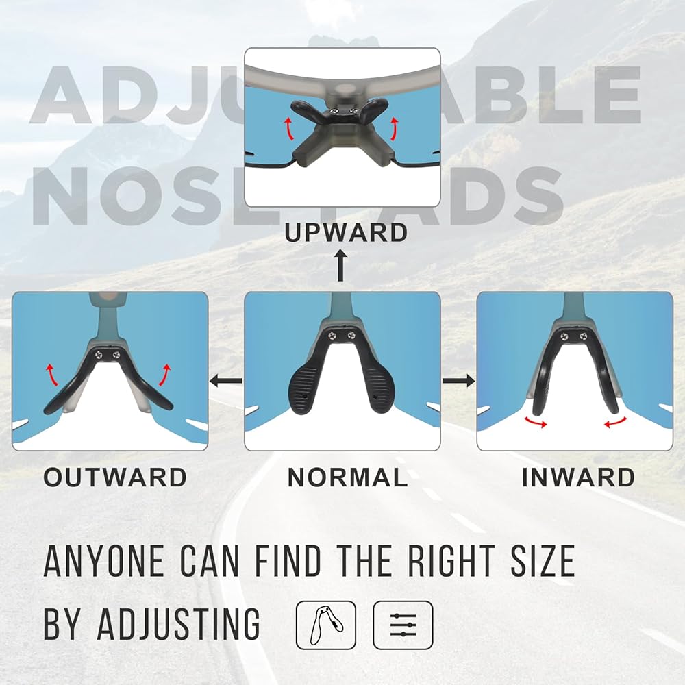 وسادة أنف قابلة للتعديل بحرية: على عكس وسادة الأنف المصنوعة من السيليكون العادي، أضفنا وظيفة قابلة للتعديل. على عكس وسادة الأنف العادية القابلة للتعديل على اليسار واليمين، فقد أضفنا وظيفة قابلة للتعديل لأعلى وأسفل. على عكس وسادة الأنف العادية ذات سطح تلامس صغير، نقوم بتوسيع سطح الاتصال بين وسادة الأنف وجسر الأنف، مما يزيد من الاحتكاك، ولا يوجد ضغط تقريبًا أثناء مقاومة الانزلاق.