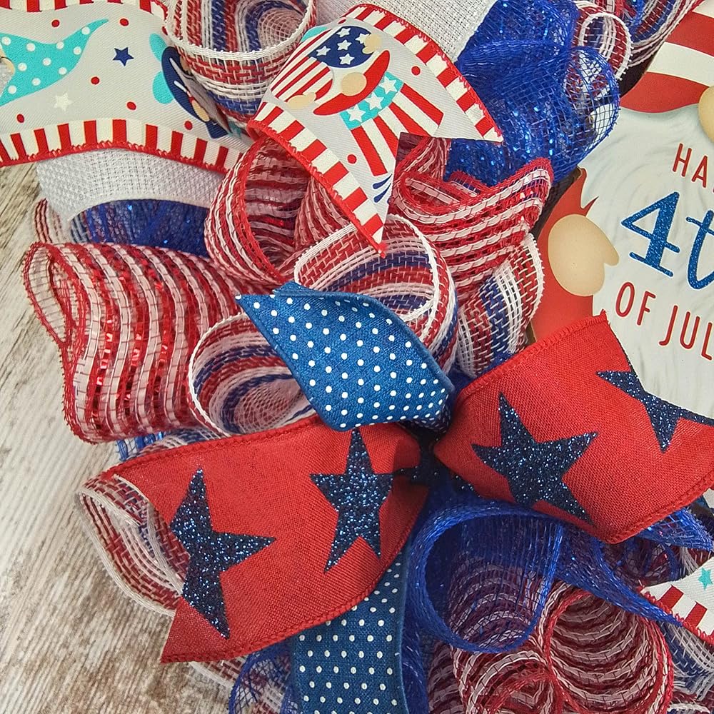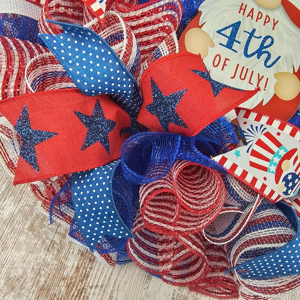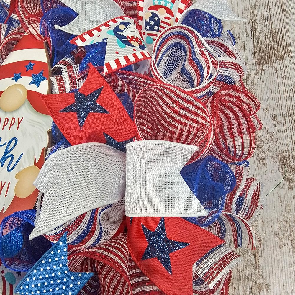 This Fourth of July wreath will make a wonderful addition to your indoor or outdoor home decor or a thoughtful gift for that special person or a special occasion. Use it for your own 4th of July decor, decoration for a Independence Day party or a gift for someone who loves patriotic decorations.