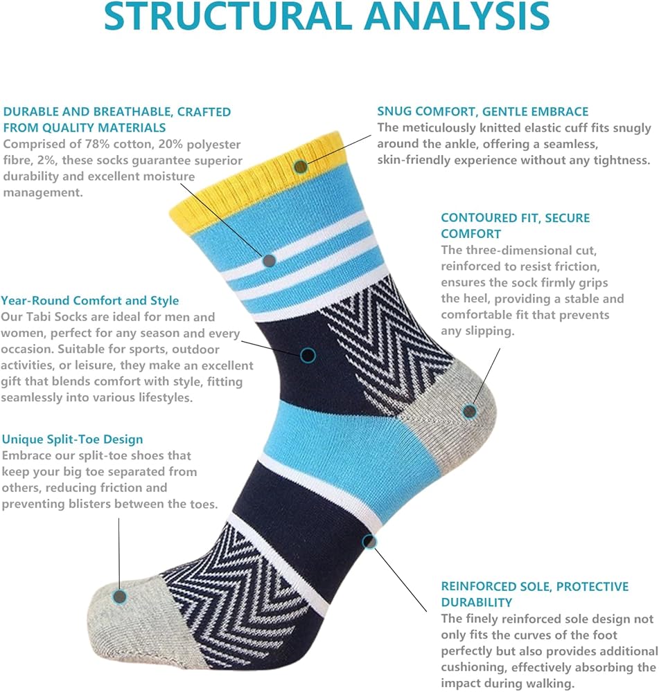 ○ خامة عالية الجودة: مصنوعة من مزيج القطن الفاخر، توفر جوارب أصابع القدم هذه تهوية وراحة لا مثيل لها. متينة من حيث التصميم، فهي تتحمل فترات طويلة من التآكل والغسيل دون أن تفقد شكلها أو فعاليتها.