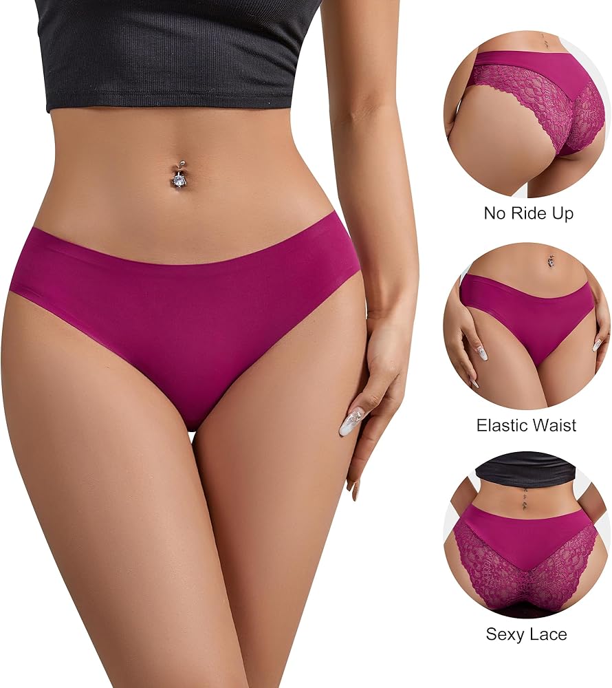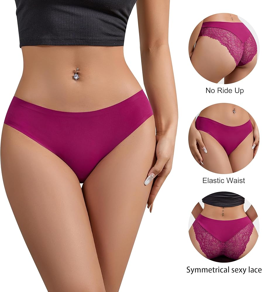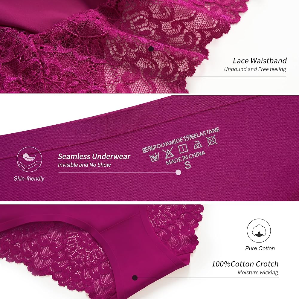 دانتيل وبدون خياطة: سراويل البكيني الداخلية مصنوعة من الدانتيل وخياطة بدون خياطة، والتي تتميز بجاذبية الدانتيل وراحة القماش بدون خياطة. تم تصميمه وتحسينه باستمرار للجمع بين مزايا كليهما ليمنحك تجربة ذات جودة أفضل.