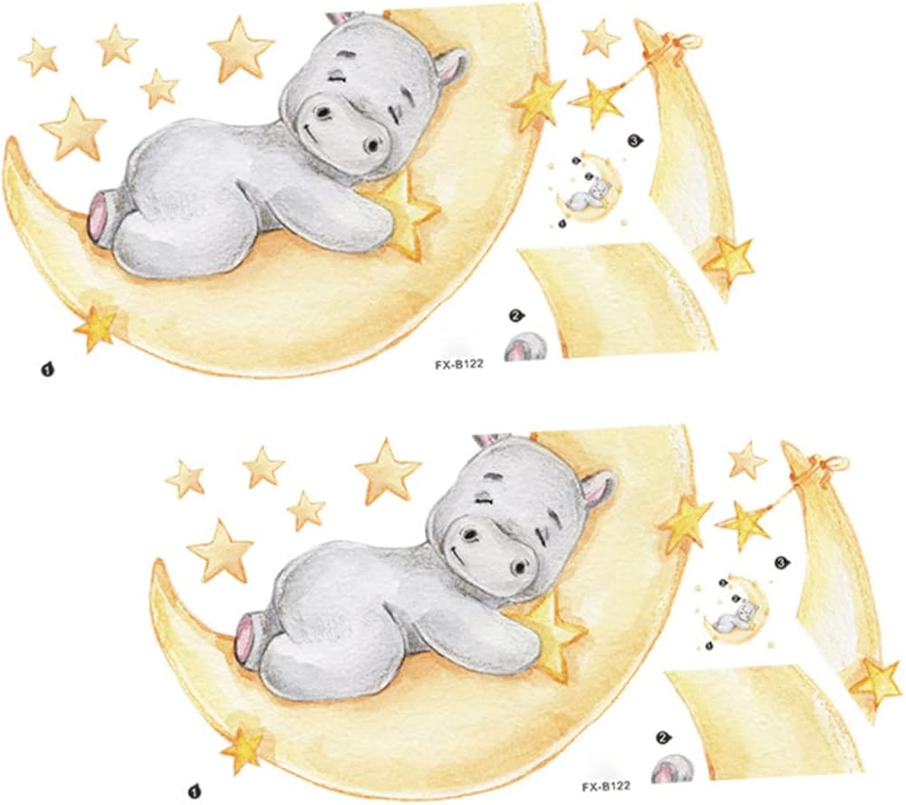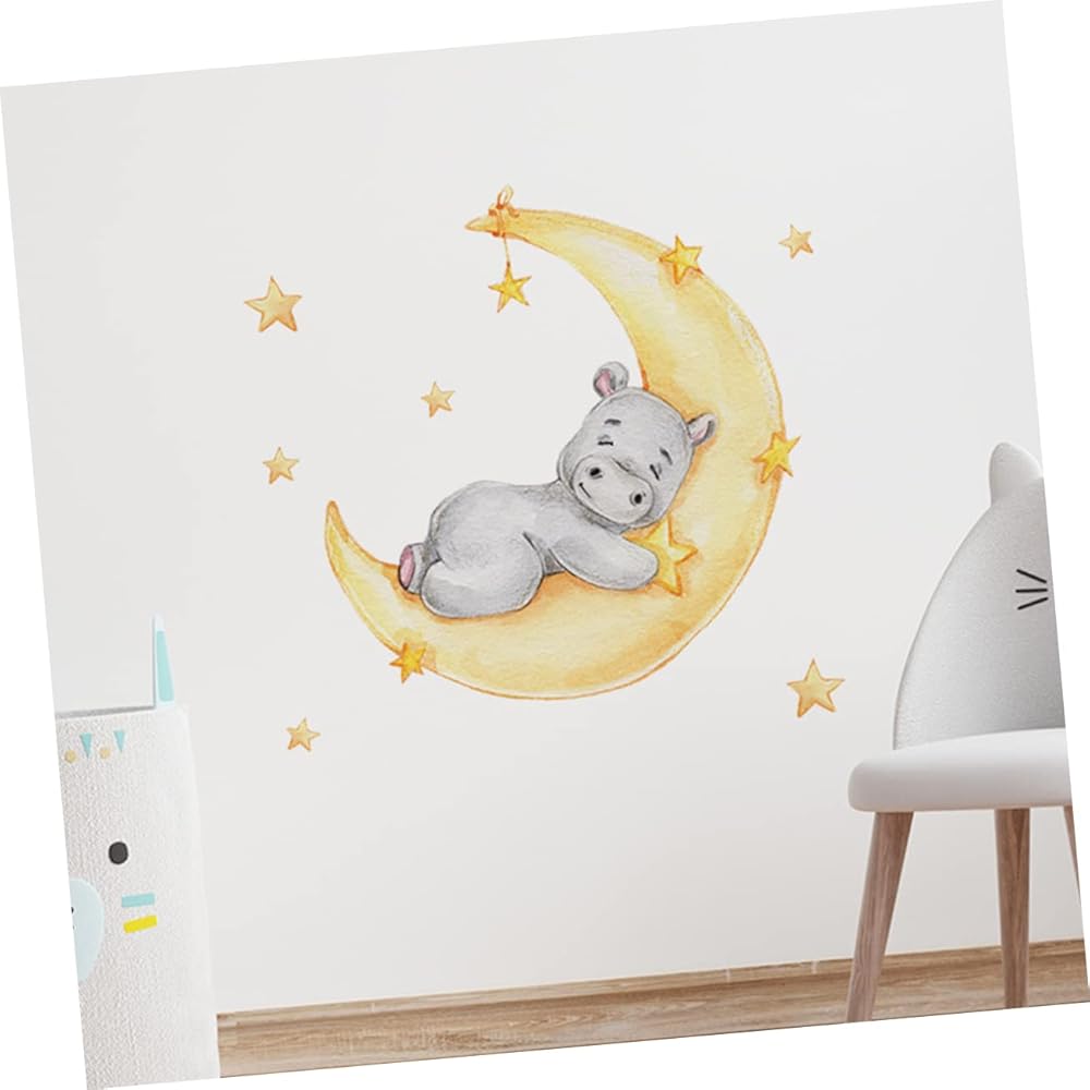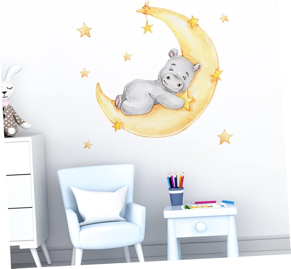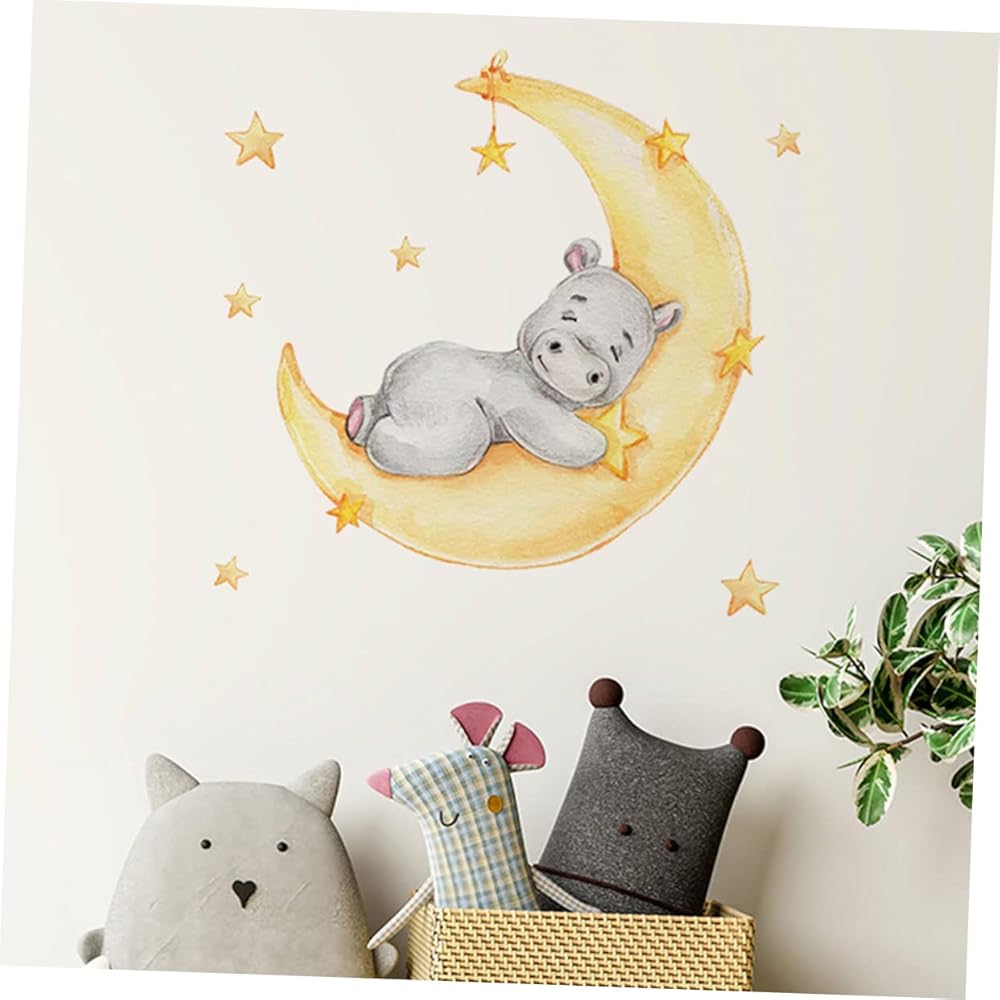 - These stickers leave keeping your walls and smooth surfaces just as they were Self- adhesive Wall Decal Hippo Moon Star Wall Stickers Adhesive Kids Room Stickers for DIY.