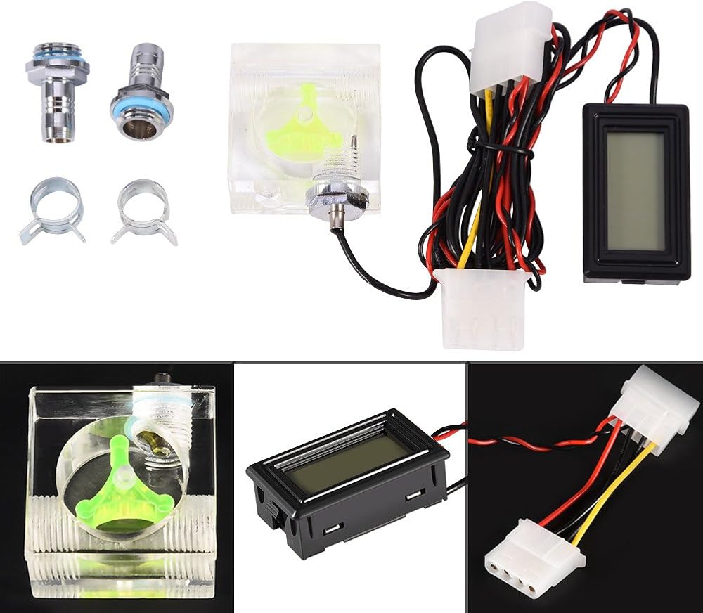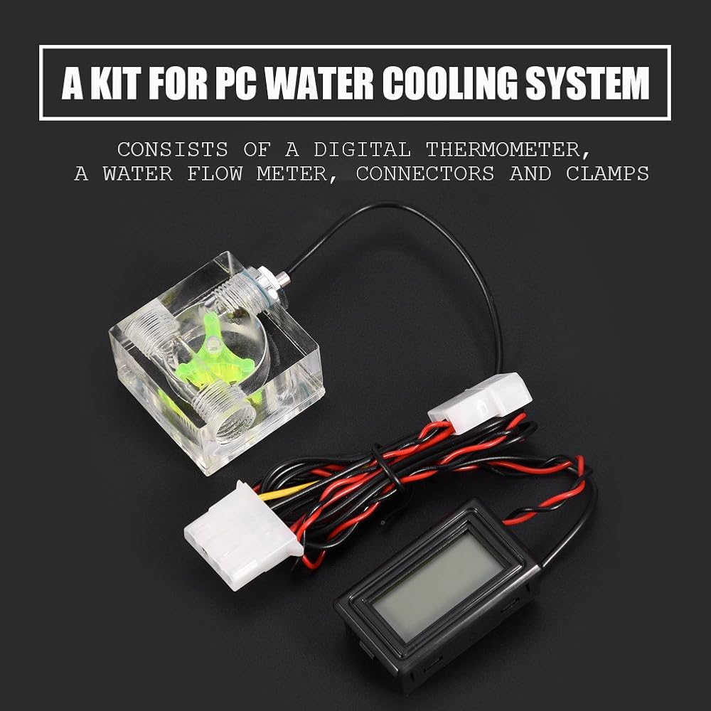【PACKING INCLUDED】A kit for PC water cooling system, consists of a digital thermometer, a water flow meter, connectors and clamps