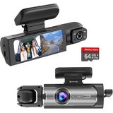 Dashcam Front and Inside,Car Camera Dash Cam for Cars,Driving Recorder with IR Night Vision,Loop Recording,Wide Angle Lens,3.16 Inch IPS Screen,Parking Mode (Black)