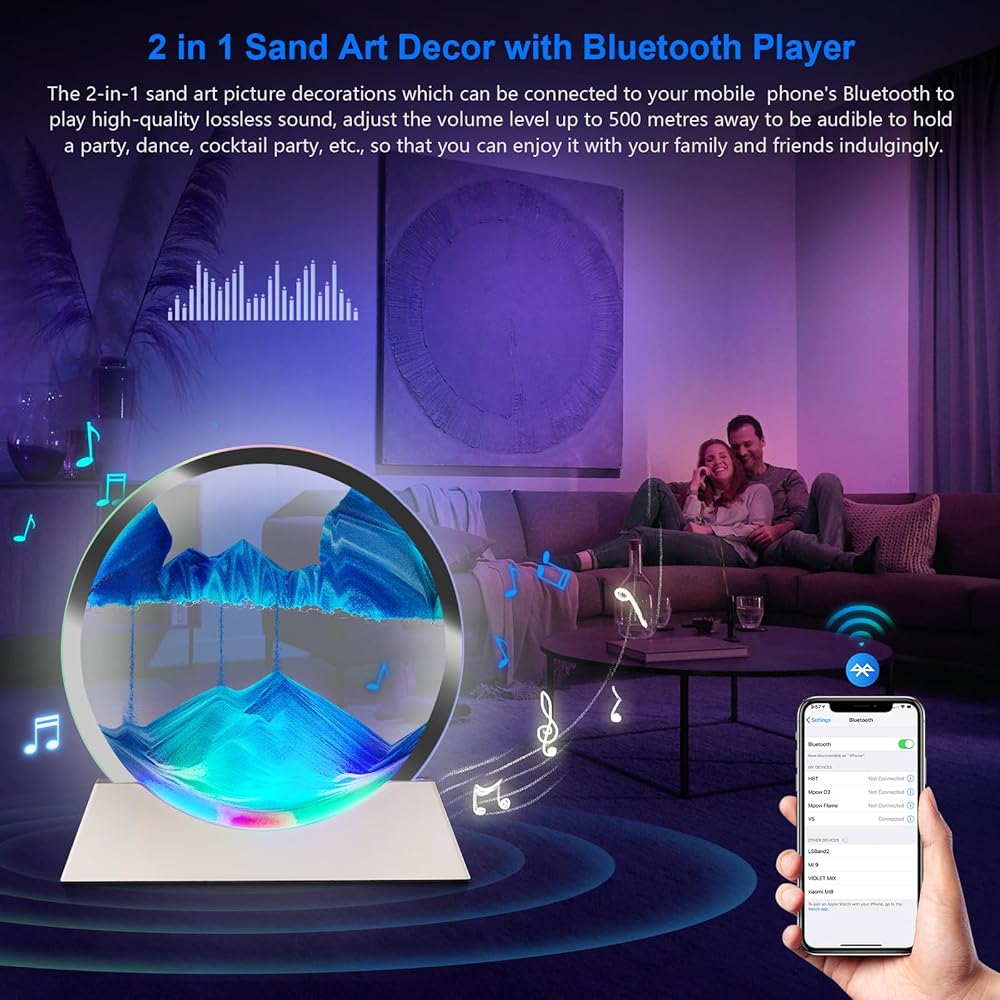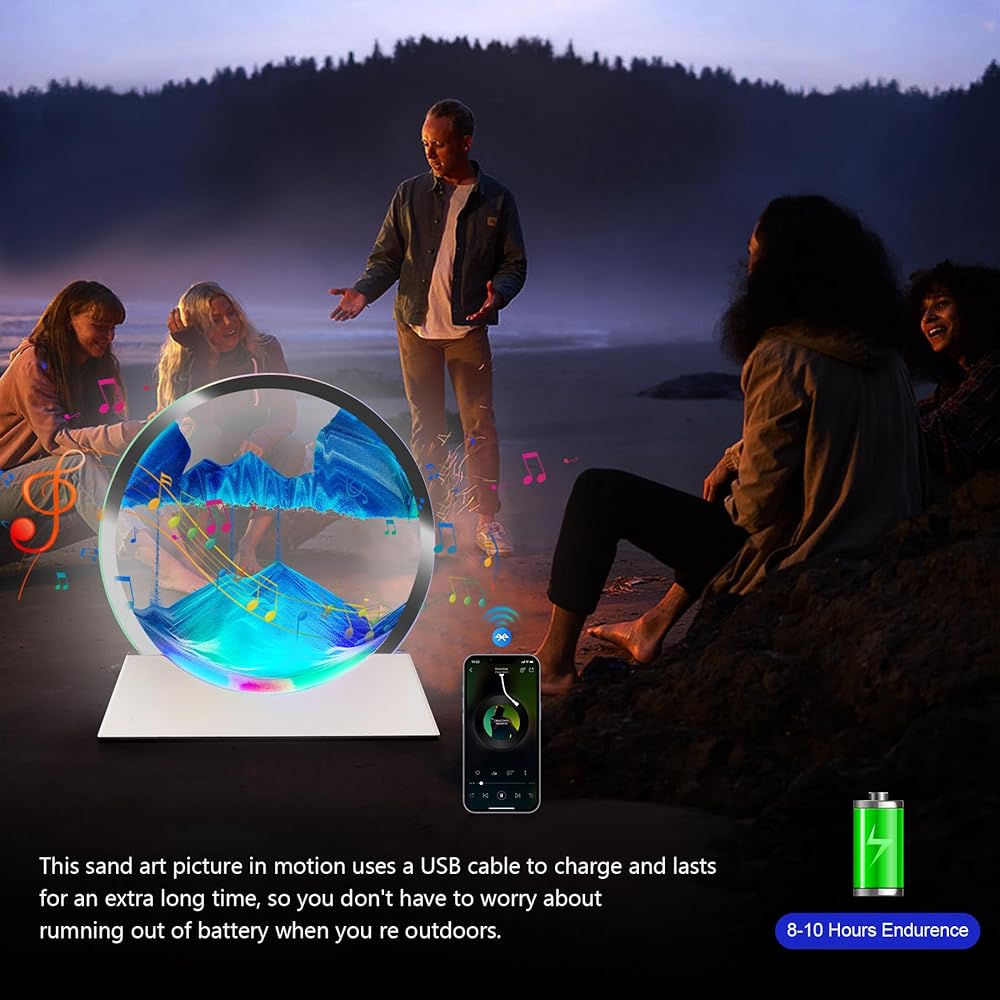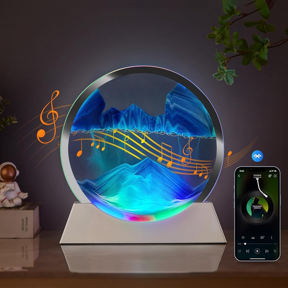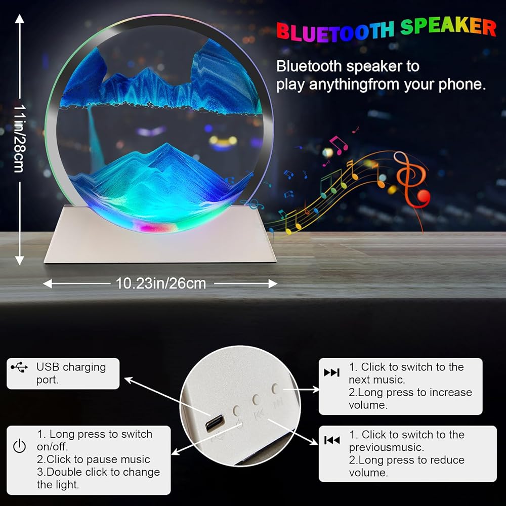 مكبر صوت بلوتوث: عزز تجربتك مع هذا الديكور الفني الرملي المتحرك الذي يتضمن قاعدة مكبر صوت بلوتوث. قم بتوصيله بسهولة بهاتفك وتشغيل الموسيقى المفضلة لديك للحصول على بيئة غامرة ومريحة تمامًا.