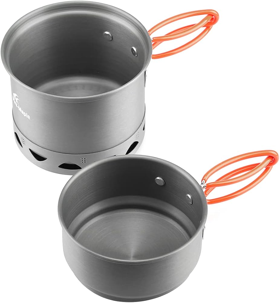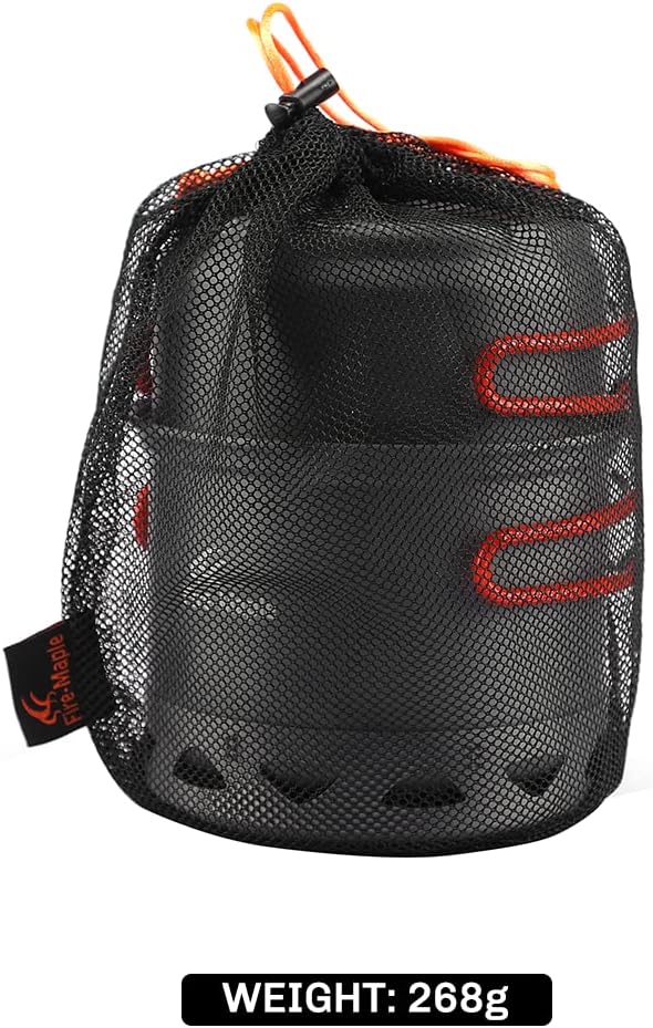 وعاء التخييم من خشب القيقب الناري، مجموعة أوعية الطبخ القابلة للطي لشخص واحد، 268 جرام FMC-217، أواني طهي مفردة خفيفة الوزن للاستخدام الخارجي مع مبادل حراري