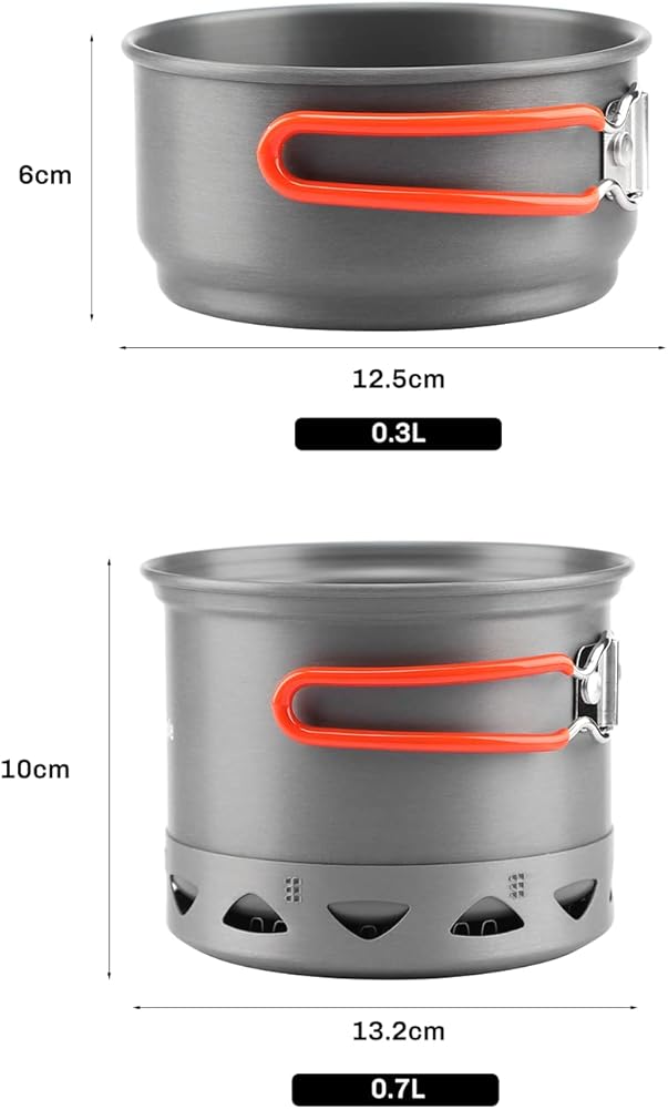 • ✅هيكل متين - مع هيكل من الألومنيوم الصلب المؤكسد والفولاذ المقاوم للصدأ، فإن مقالي التخييم هي التوازن المثالي بين أواني الطبخ الخارجية خفيفة الوزن وتدوم طويلاً.