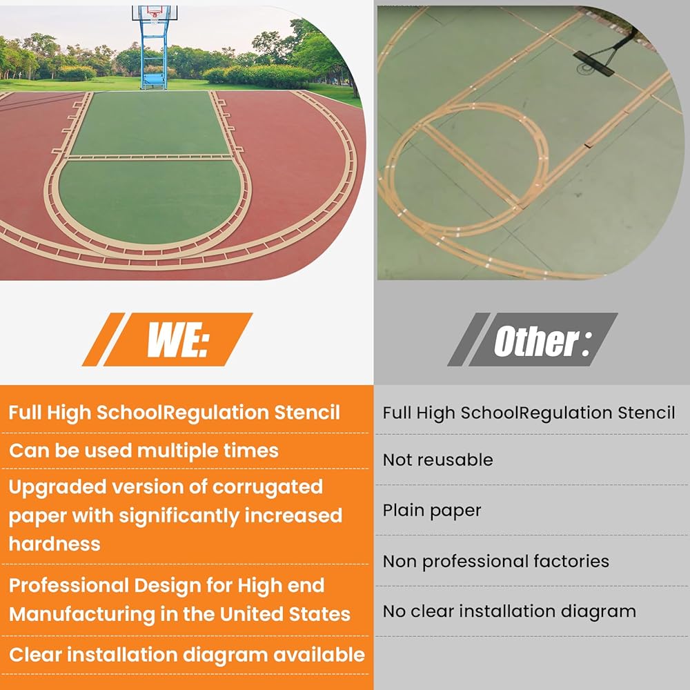 مجموعة قوالب علامة ملعب كرة السلة المتقدمة من Gopper | استنسل ملعب كرة السلة| طقم علامات ملعب كرة السلة | تصميم أمريكي| يتضمن الشريط والسحر (لا يتضمن الطلاء)