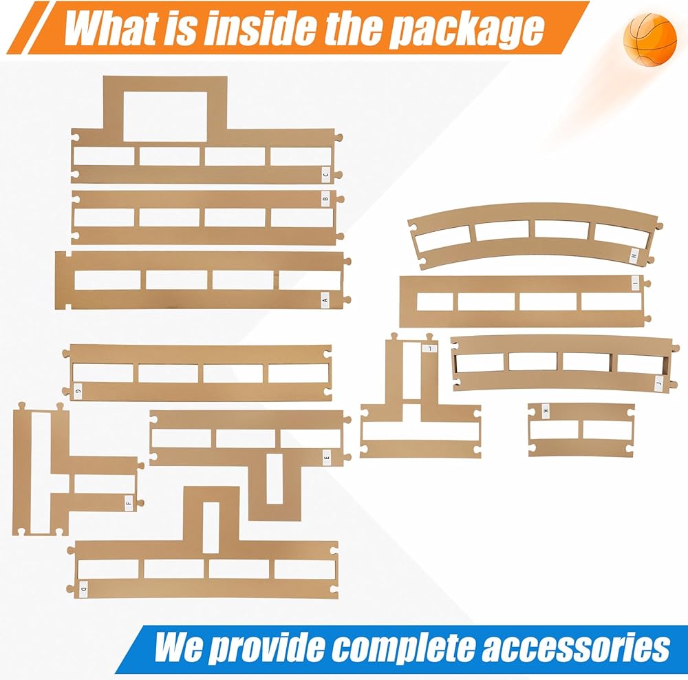 • 【💕مصممة بشكل متين وخطوط حادة💕】مصنوعة من مادة كرتون متينة تذكرنا بصناديق البيتزا، وتضمن مجموعتنا أن تكون الخطوط الموجودة في ملعب كرة السلة حادة ومحددة. سواء أكان الطقس ممطرًا أو مشمسًا، فإن هذه المادة تقف بقوة، مما يتيح لك الاستمتاع باللعبة على أكمل وجه!
