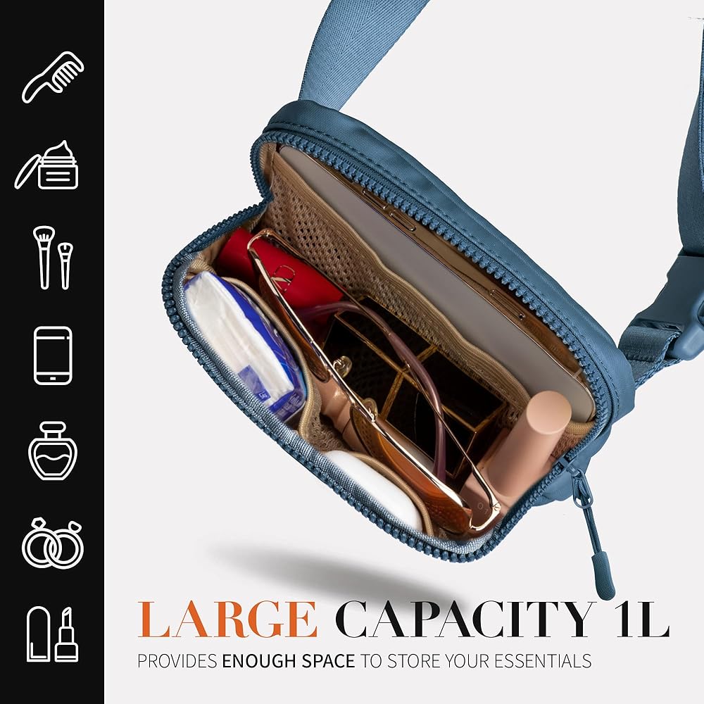Functional Fanny Pack - lightweight and easy to carry, our mini belt bag is very roomy enough to hold your cell phone,wallet,most used credit/debit cards,Lipstick, sunscreen, makeup and other small items to provide you with the greatest convenience.