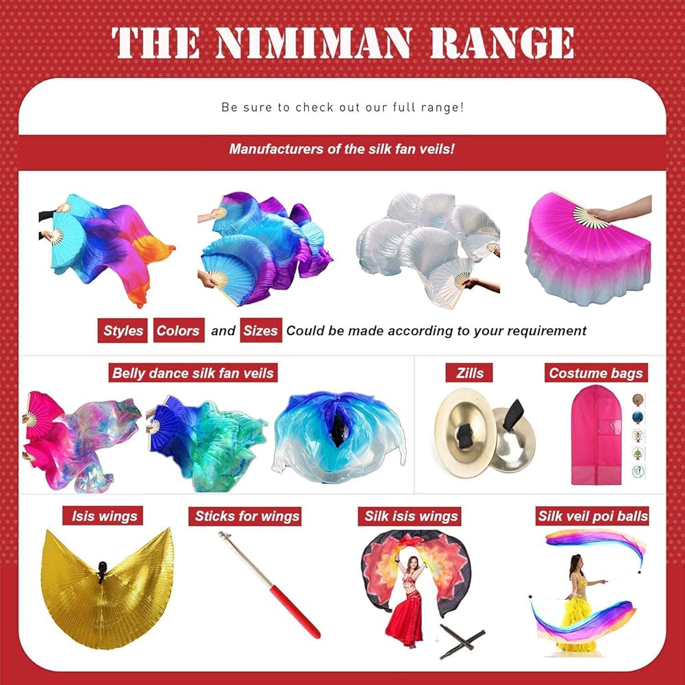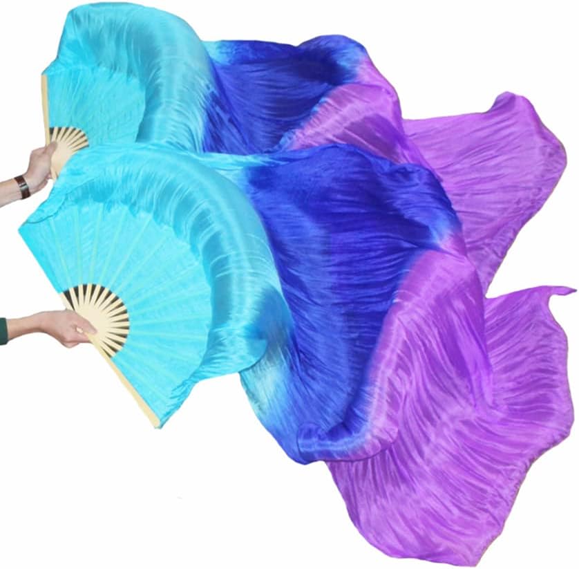 حجاب Nimiman للسيدات مصنوع يدويًا من الحرير لمروحة الرقص الشرقي باللون الفيروزي والأزرق والأرجواني (M)