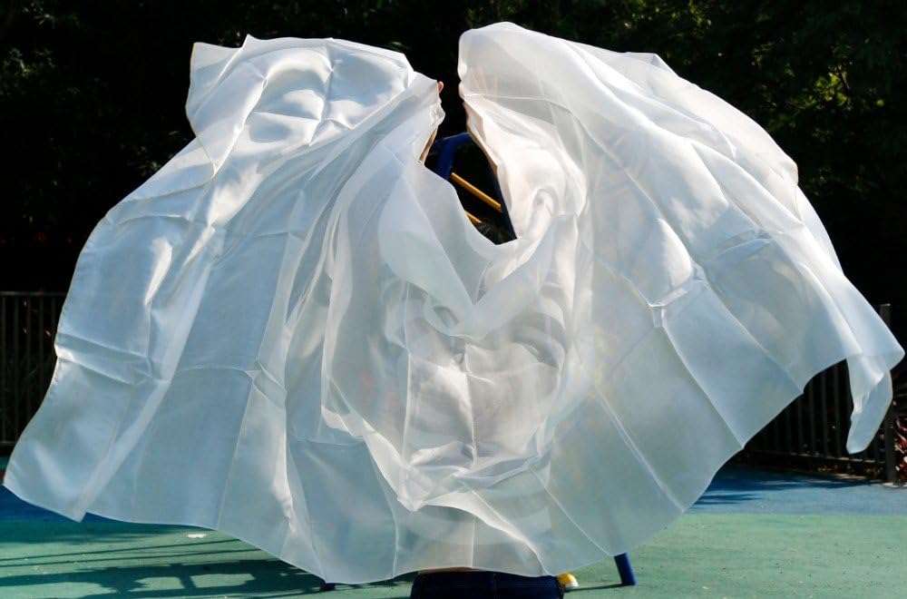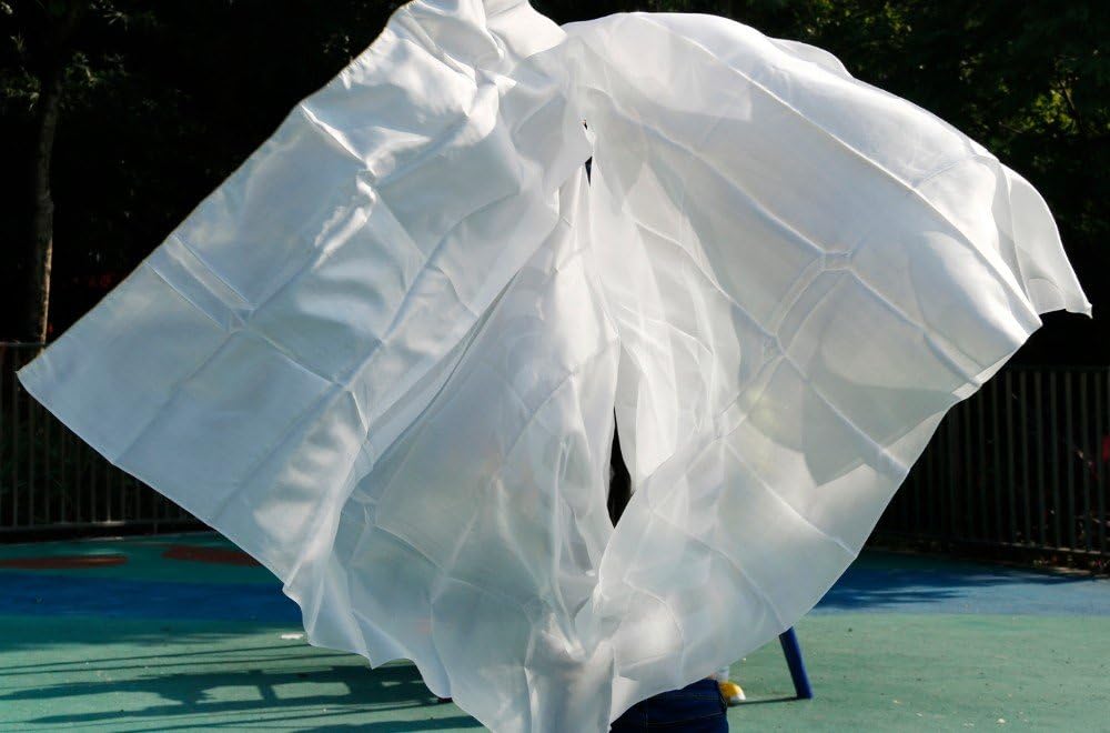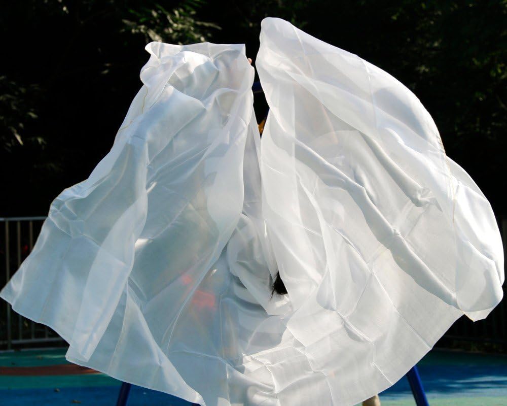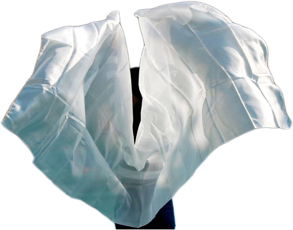 حجاب للرقص الشرقي من الحرير الأبيض النقي من نيميمان للراقصات الشرقيات 100% مادة حرير حقيقية 250114 سم (أبيض)، 2.5 م × 1.14 م