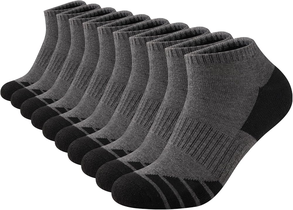 10 أزواج من الجوارب الرجالية للكاحل، محبوكة من مواد صناعية ناعمة ومسامية عالية الجودة، مناسبة للارتداء اليومي وتحافظ على جفاف القدمين وراحتهما طوال اليوم.