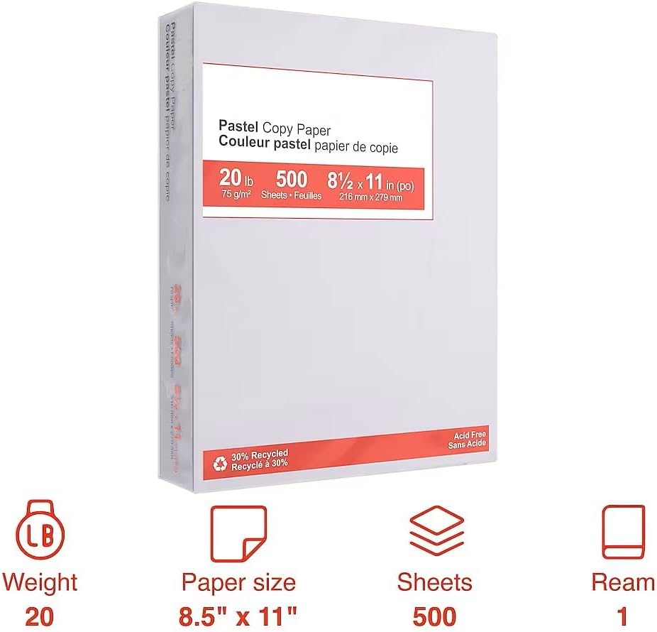Reliable multipurpose paper is perfect for everyday use. Paper measuring: 8.5" x 11" (US letter). Paper weight: 20 lbs. This pastel paper is ideal for injecting soft hues to any project. Gray/silver color for an attractive look. Contains 500 sheets per ream. Contains 30% recycled post-consumer content to protect the natural environment.