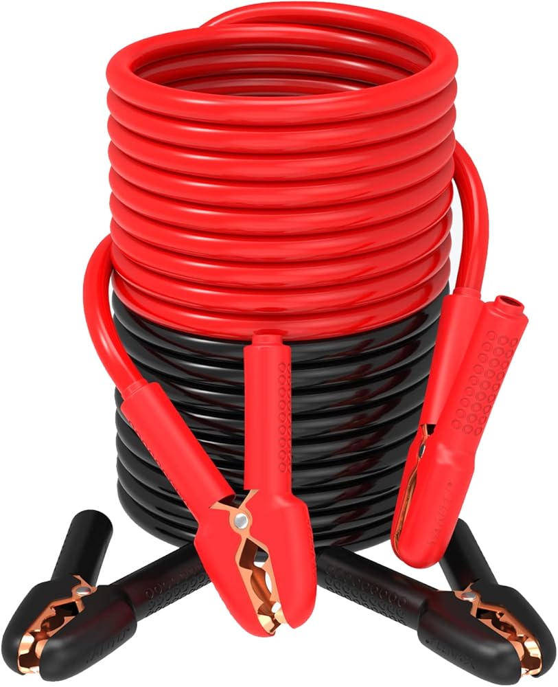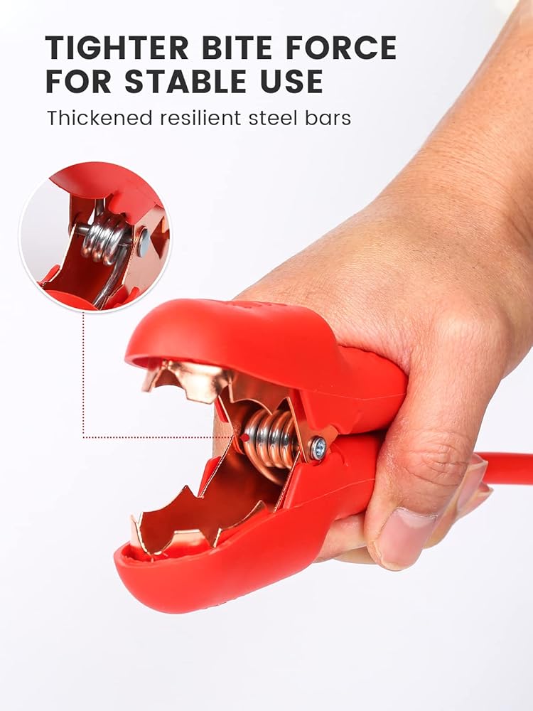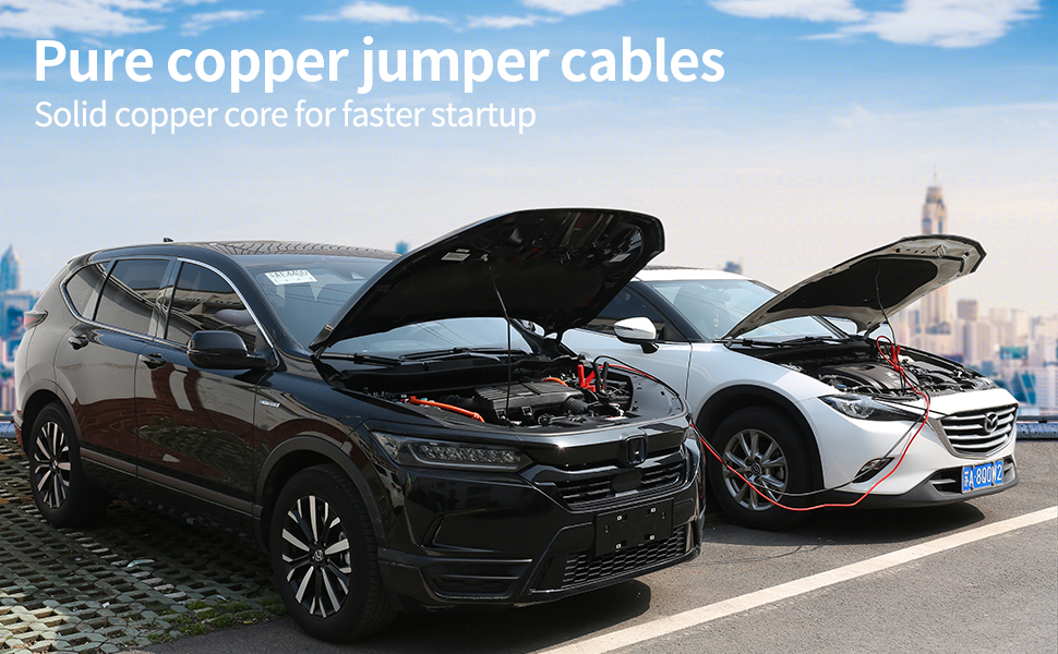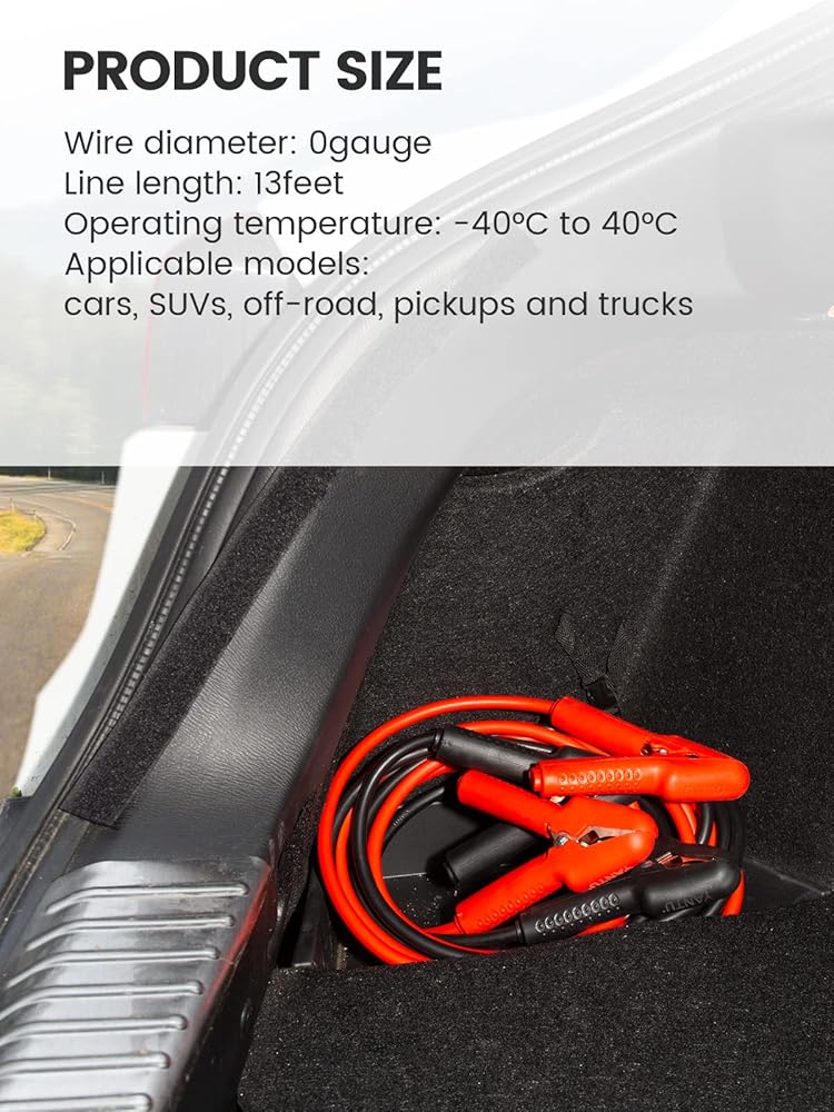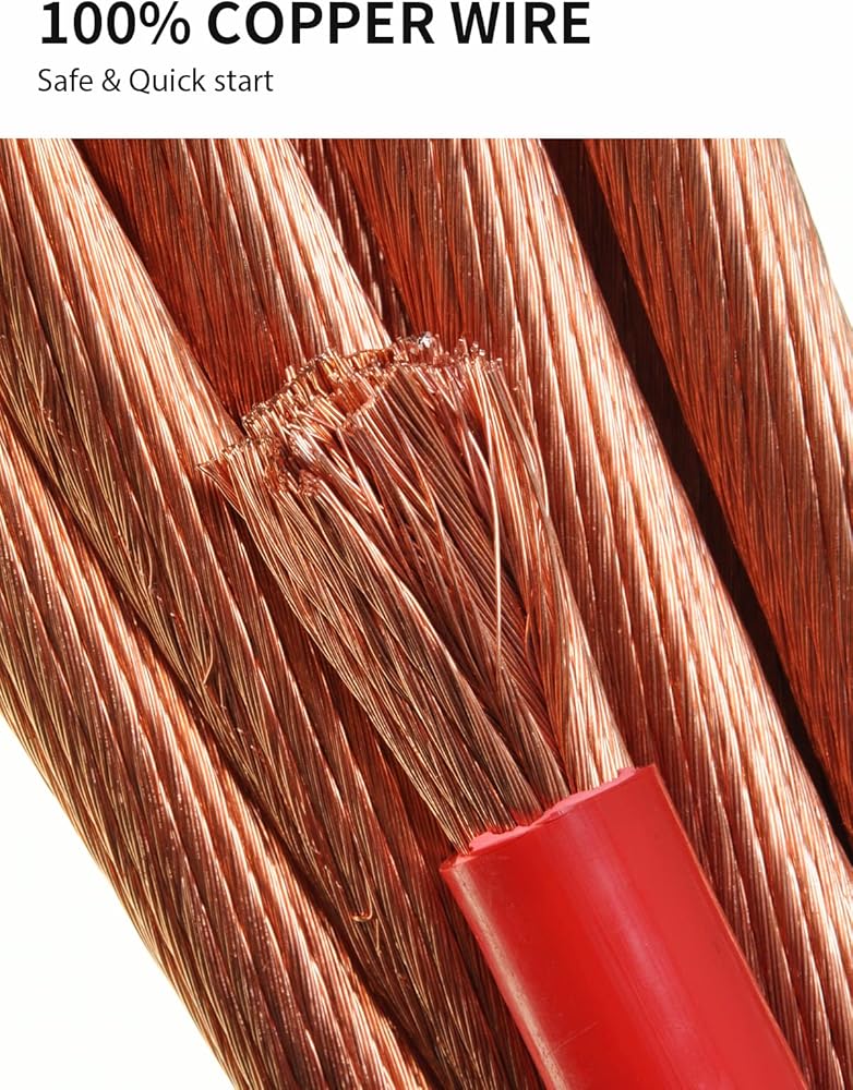• نحاس 100% لتوصيل أفضل - بالمقارنة مع الألومنيوم المطلي بالنحاس، يتميز الكابل النحاسي النقي بمقاومة كهربائية منخفضة، وثبات عالي وعمر خدمة أطول. الموصلية الكهربائية الممتازة تضمن توصيل التيار الكامل. يمكنه تشغيل السيارة على الفور ببطارية فارغة.