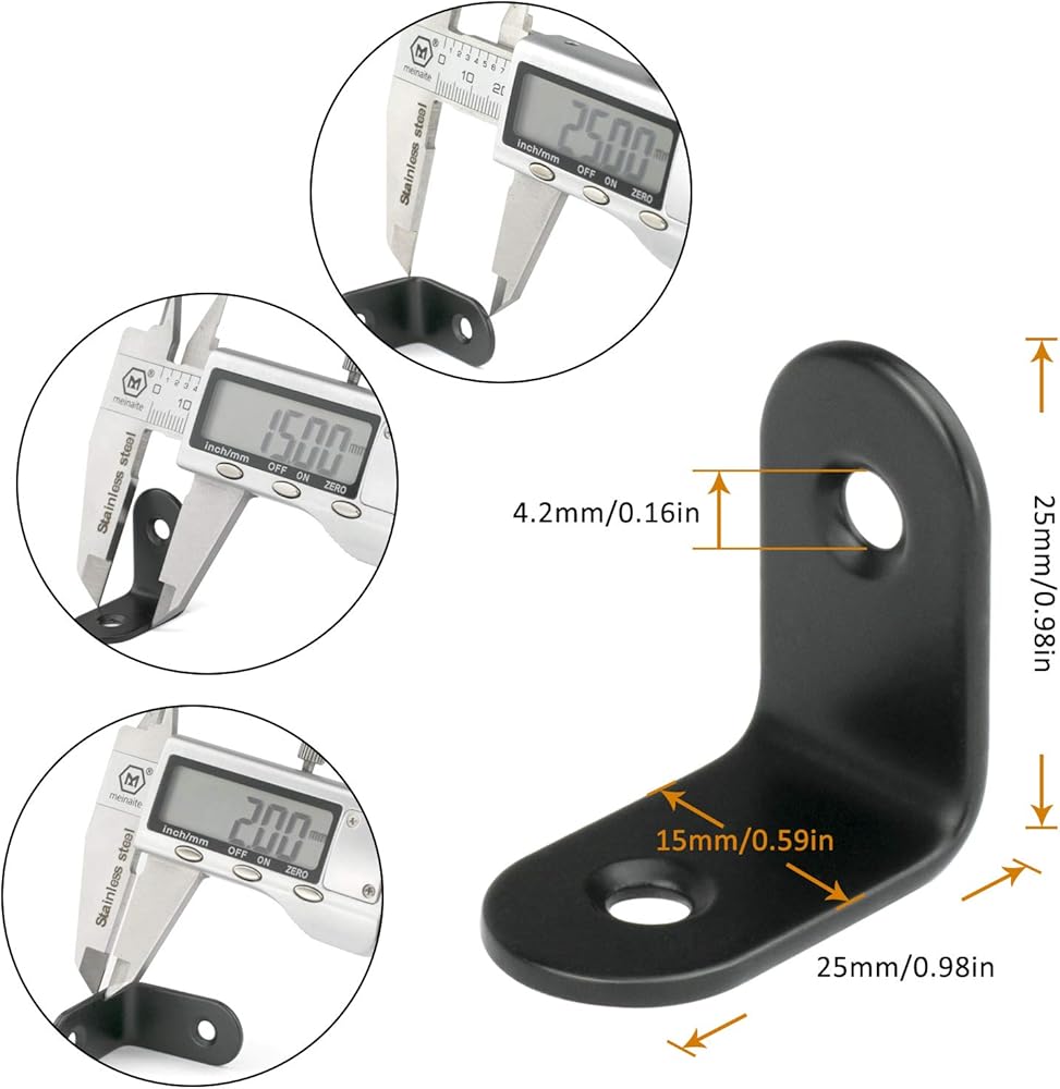 • 『Package Included』20 pieces black corner brackets,and sufficient screws(>40). Size: 30 x 30 x 15mm (L x H x W) / 1.18 x 1.18 x 0.6 inch; Hole Diameter: 4.2 mm / 0.16 inch; Hole Quantity: 2 holes.