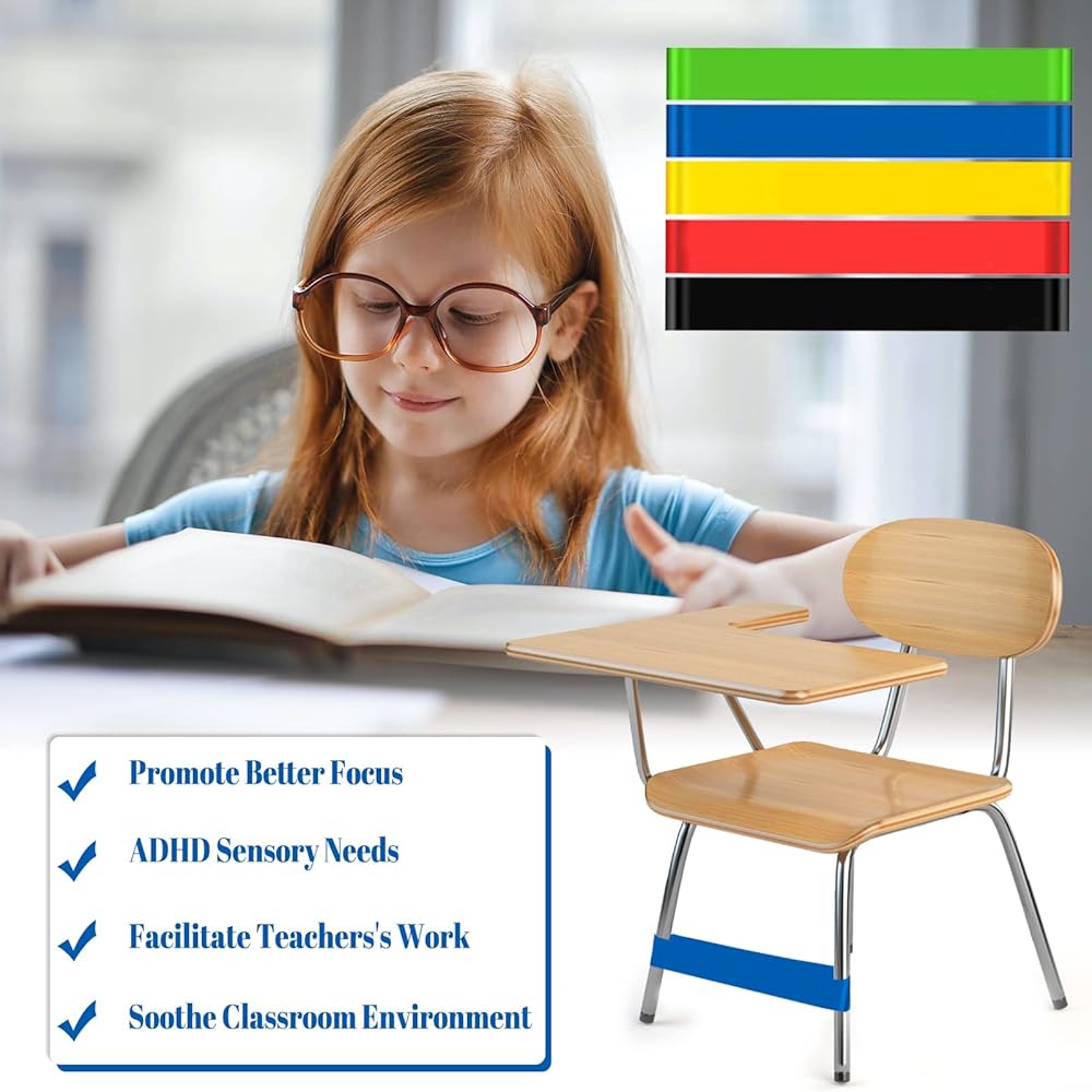 تقليل القلق وتحسين التركيز: مثالي لمعلمي المدارس الذين يرغبون في مساعدة طلابهم المتململين في التنظيم الذاتي وتوفير مقاعد بديلة مرنة في الفصول الدراسية. يمكن أن يساعد استخدام أربطة الكرسي لعلاج اضطراب فرط الحركة ونقص الانتباه أو التوحد أو SPD أو غيرها من الاحتياجات الحسية في تحسين تجربة التعلم في الفصول الدراسية أو في المنزل أثناء الجلوس.