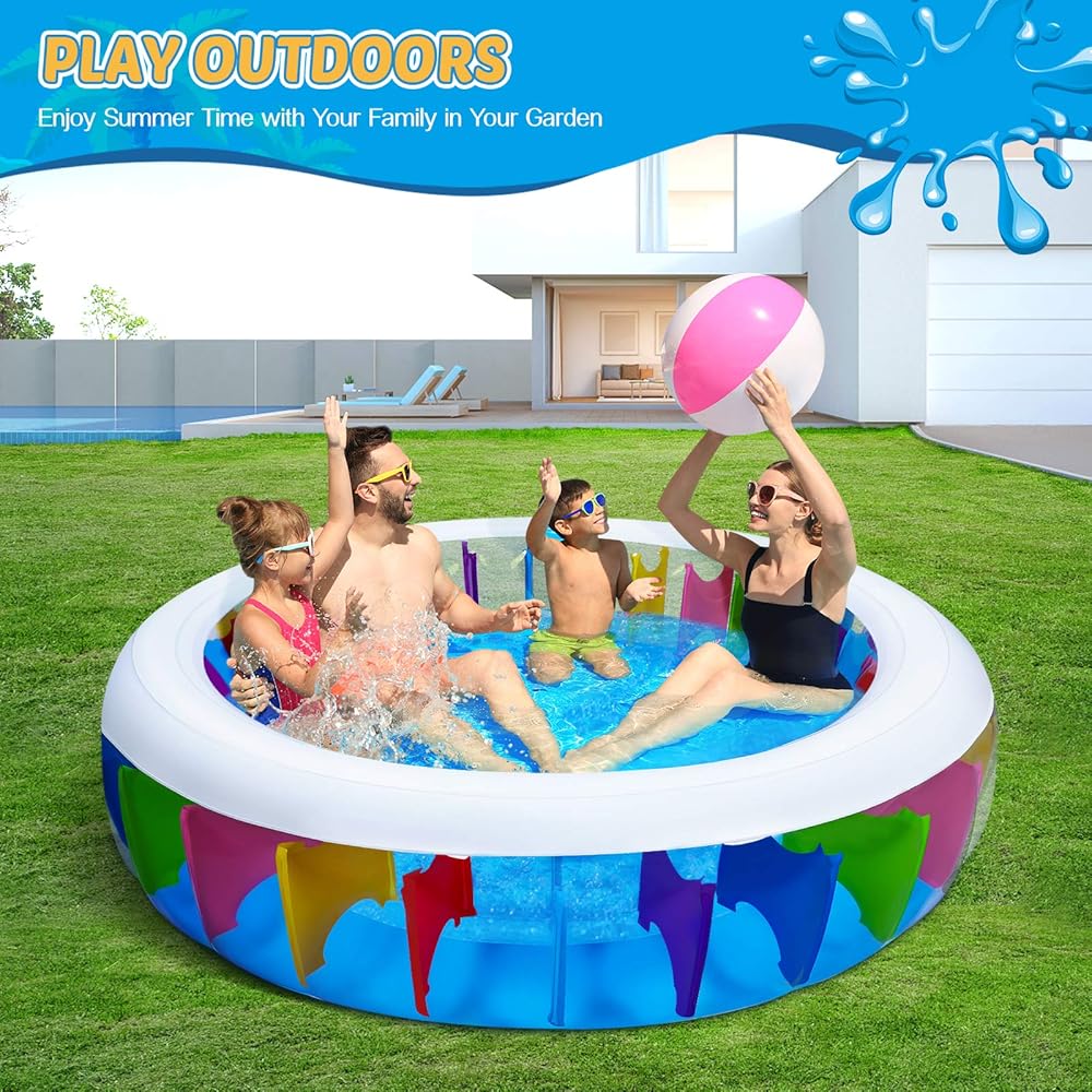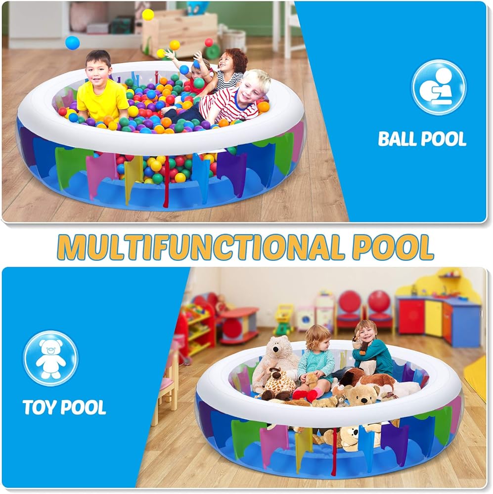 حمام سباحة متعدد الأغراض - يمكن استخدامه ليس فقط كحمام سباحة عائلي قابل للنفخ، ولكن أيضًا كحمام سباحة للكرة، وحمام سباحة لصيد الأسماك، مما يوفر مساحة آمنة للتمدد وتعلم الحركة، ويمكن للآباء تركها والقيام بأشياءهم الخاصة. يمكنك استخدامه في العديد من الأماكن داخل المنزل وفي الهواء الطلق في الحدائق والشواطئ والمروج والفناء الخلفي وفي أي مكان آخر.