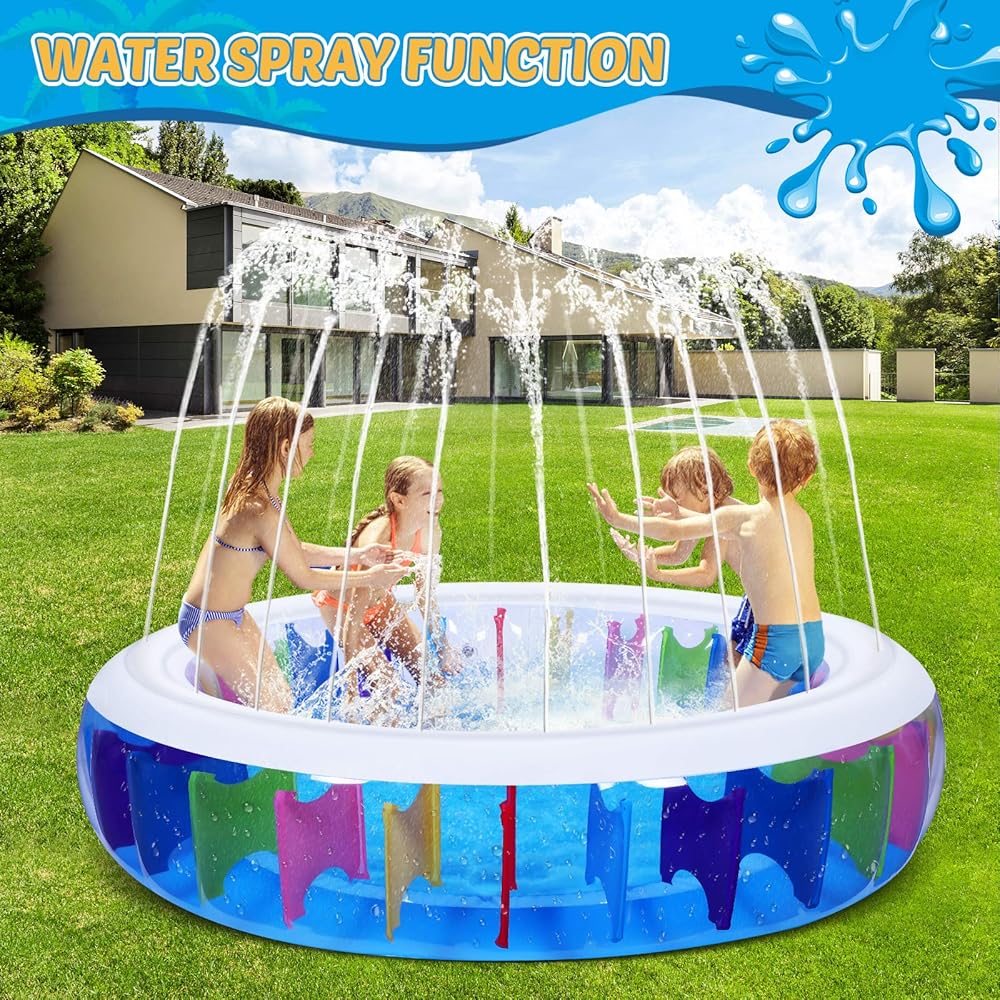وظيفة الرش - يتميز حمام السباحة الدائري القابل للنفخ مقاس 70.8 بوصة × 70.8 بوصة × 15.7 بوصة بتصميم وظيفة 2 في 1، والذي لا يمكنه فقط تحقيق وظيفة الرش من خلال ضغط الماء، ولكن يمكنه أيضًا استيعاب شخصين بالغين كحمام سباحة. ستتيح لك وظيفة الرش الحصول على ملعب مائي خاص بك في الحديقة مما يجلب المزيد من متعة الرش والشعور البارد لعائلتك والاستمتاع بوقت الصيف!