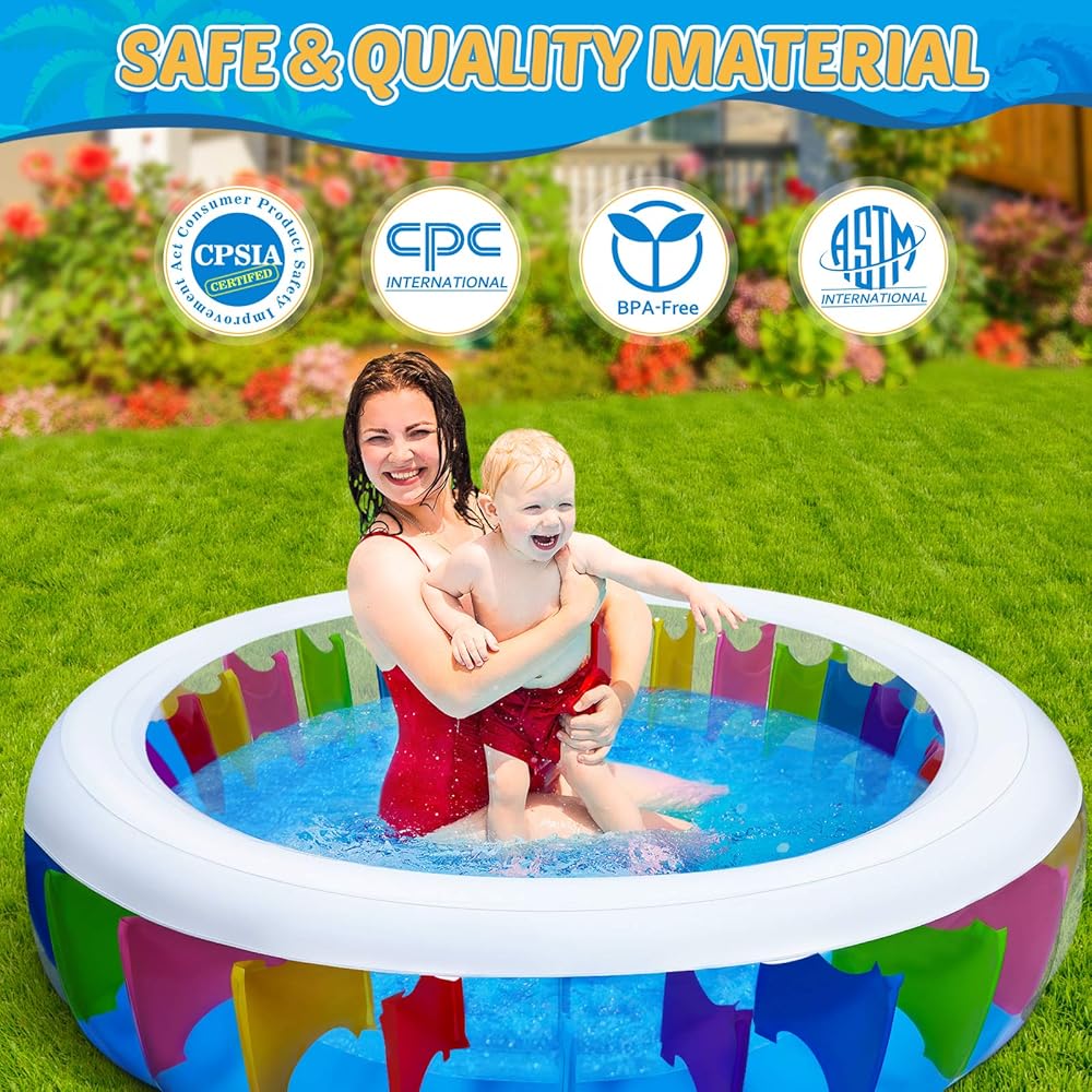 مادة آمنة وعالية الجودة - اجتاز حمام السباحة العائلي اختبار SGS الدولي، واختبار حماية البيئة 6P بدون الفثالات، والذي يلبي المعايير الدولية. يتميز حوض السباحة القابل للنفخ المصنوع من الكربون الحراري عالي القوة والبولي فينيل كلوريد القوي بمقاومة عالية للتآكل، وضيق جيد للهواء، وقوة توسيد قوية، ومتانة، وسهولة الصيانة والتنظيف.