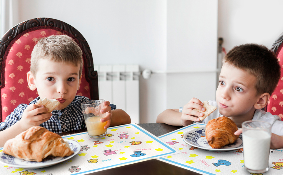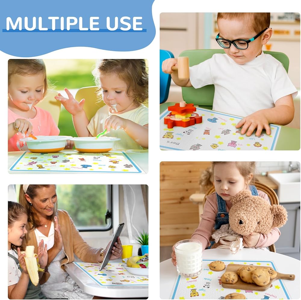 【تصميم أفضل وممتع】التصميم الممتع يمكن أن يلفت انتباه الطفل ويلهم خياله. سيحب كل طفل التصميم. مقاس مفرش الأطباق 30.48 سم × 45.72 سم، بما في ذلك 18 قطعة.