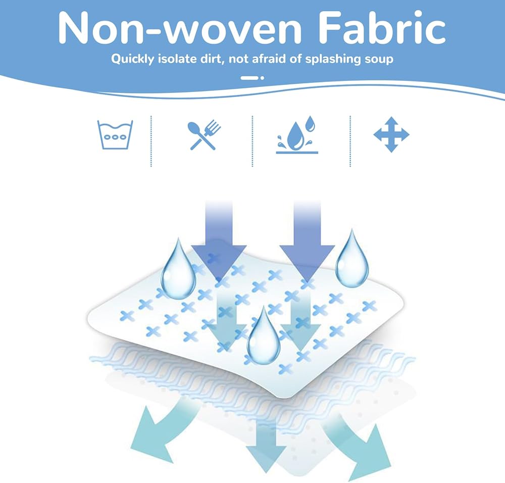 【أغراض متعددة】مفرش الطاولة الذي يُستخدم لمرة واحدة قابل لإعادة التدوير ويمكنه حماية الطفل من الأوساخ. يمكن استخدامها لتناول الطعام واللعب والمطاعم، وهي خفيفة الوزن وقابلة للحمل.