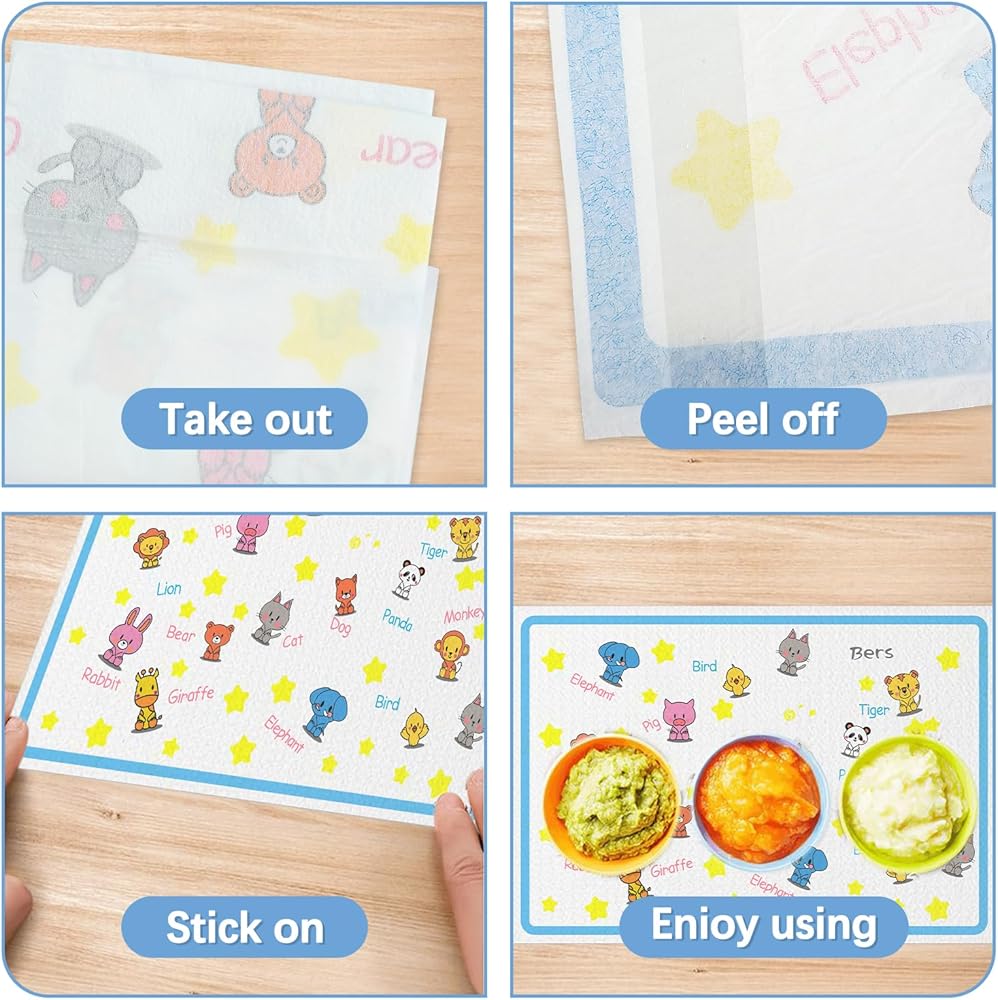 【بلاستيك صالح للطعام】مفارش أطباق الأطفال التي تستخدم لمرة واحدة مصنوعة من بلاستيك صالح للطعام، وخالية من البيسفينول A وPVC والفثالات والرصاص. نحن نهتم بصحة الطفل بعمق.