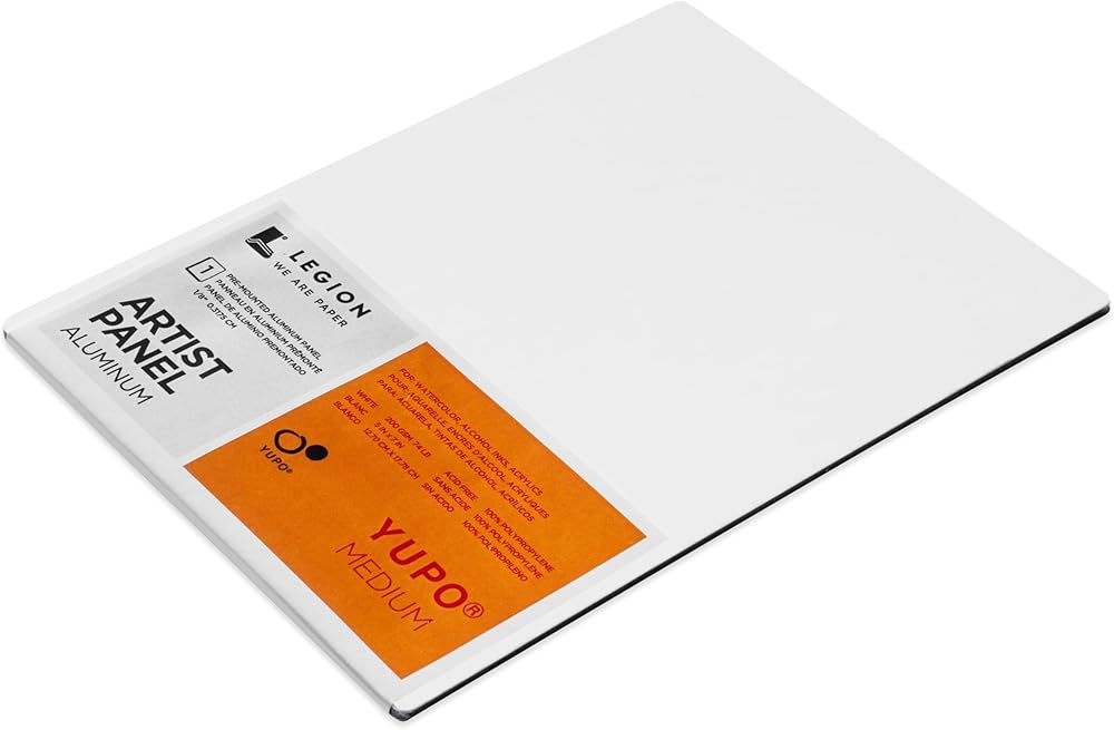 Embrace rigidity. Our finest papers, pre-mounted on sturdy aluminum, offer unbeatable support for all mediums ensuring your art is beautifully secure from palette to presentation. Firm yet light, these ready-to-frame art panels are virtually unbreakable and provide an unyielding foundation for your work, so there's no bends, no buckles, no matter where you take it. The Legion Artist Panels feature five of Legion's best fine art papers deftly mounted onto this chic and handsome brushed aluminum backing. - Stonehenge Aqua Coldpress 140lb White - Experience this popular watercolor paper now backed with the stability of an easel - Stonehenge Aqua Coldpress 140lb Black – Same as the white, but opposite. See how your opaque colors and pearlescents gleam from its ebony surface -Stonehenge Oil – Just grab your oil paints and summon every ounce of your plein-air creativity with this no-prep gem -Stonehenge White – Discover our best-selling drawing paper, now with incredible support from below -YUPO Medium – Now for something different. These panels are perfect for non-traditional artists who want non-traditional effects. Legion Artist Panels are available in five formats: 5”x7”, 6”x6” 8”x10”, 12”x16” and 16”x20”