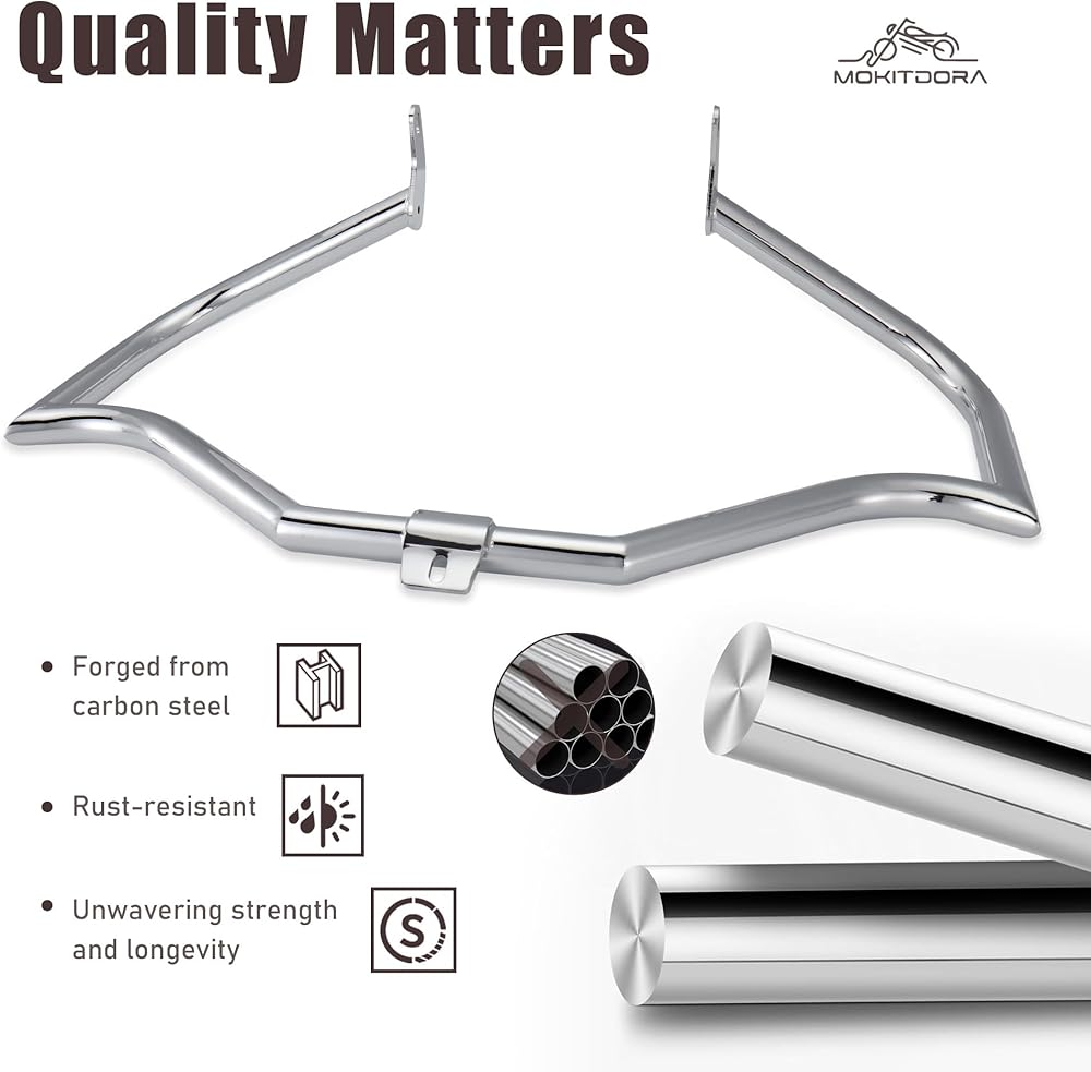 توافق متعدد الاستخدامات - تم تصميمه ليناسب مجموعة متنوعة من موديلات Softail، ويتميز شريط الطريق السريع الخاص بنا بتوافق متعدد الاستخدامات، مما يوفر ملاءمة مصممة خصيصًا لدراجتك النارية المحددة