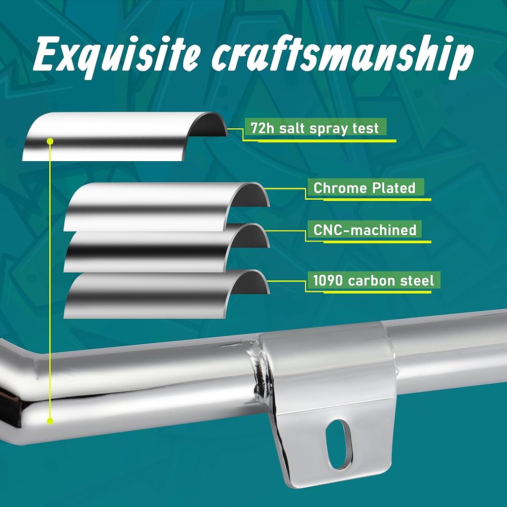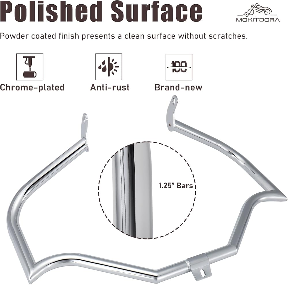 قضبان التصادم القوية - قضيب الطريق السريع الواقي للمحرك عبارة عن أنبوب فولاذي بسمك 1-1/4 بوصة، أكثر سمكًا من معظم البائعين. جميع البراغي مصنوعة من الفولاذ الفاخر، وهو قوي ومتين، مما يضمن أداءً موثوقًا يدوم طويلاً.