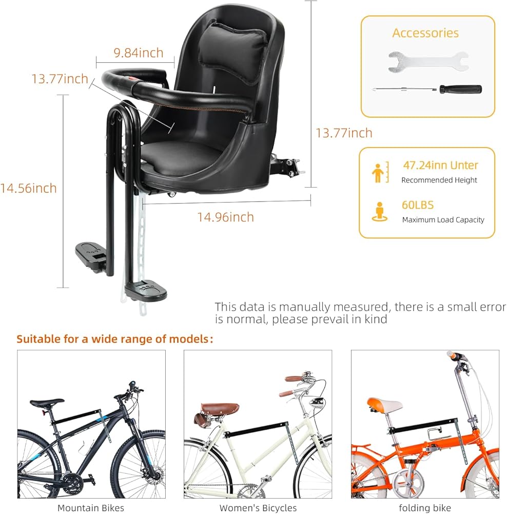 انتبه: يجب أن يكون هناك مساحة كافية بين المقعد ومقود الدراجة لتثبيت مقعد دراجة الأطفال هذا، وهو مناسب للدراجات الجبلية ودراجات المدينة وما إلى ذلك.