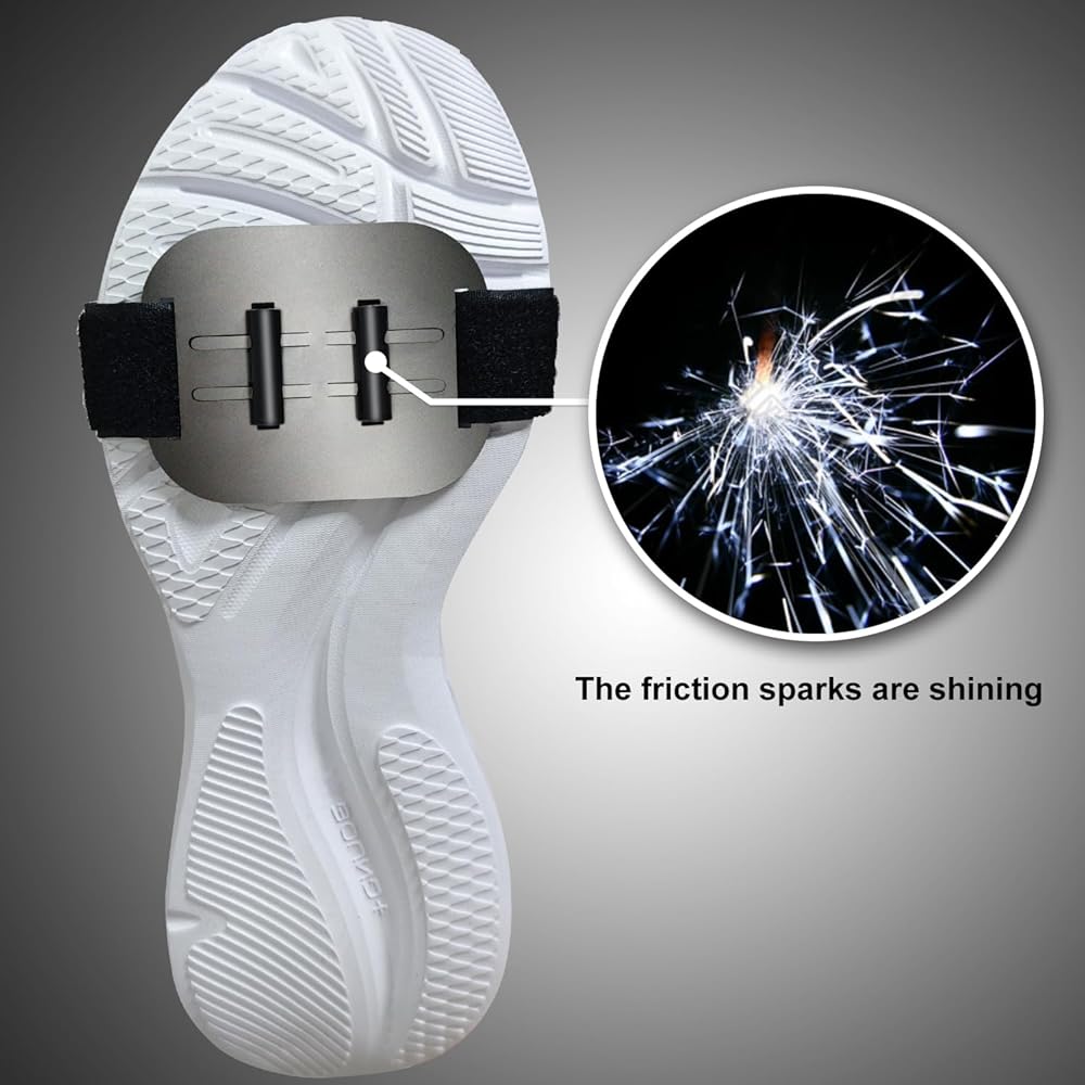 ⏲Easy setup: Our shoe sole spark stones are attached with adhesive tape, fitting all shoe sizes and versatile in purpose. No special skills needed—simply attach it to your shoe sole for an instant, secure fit!