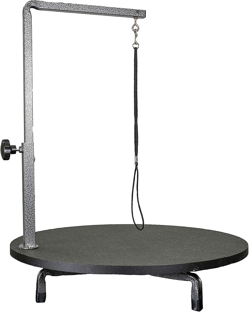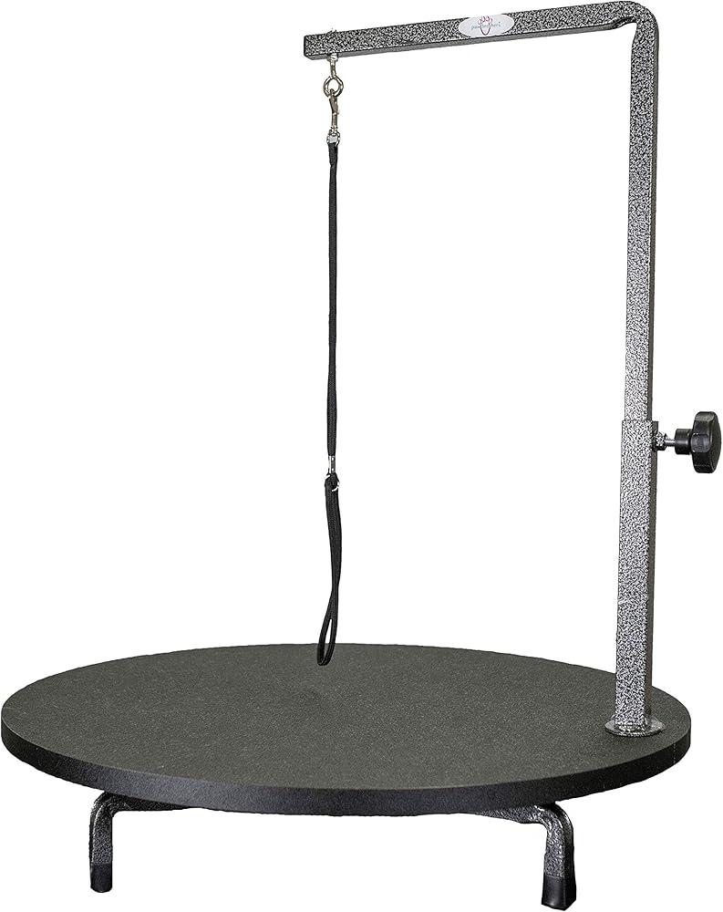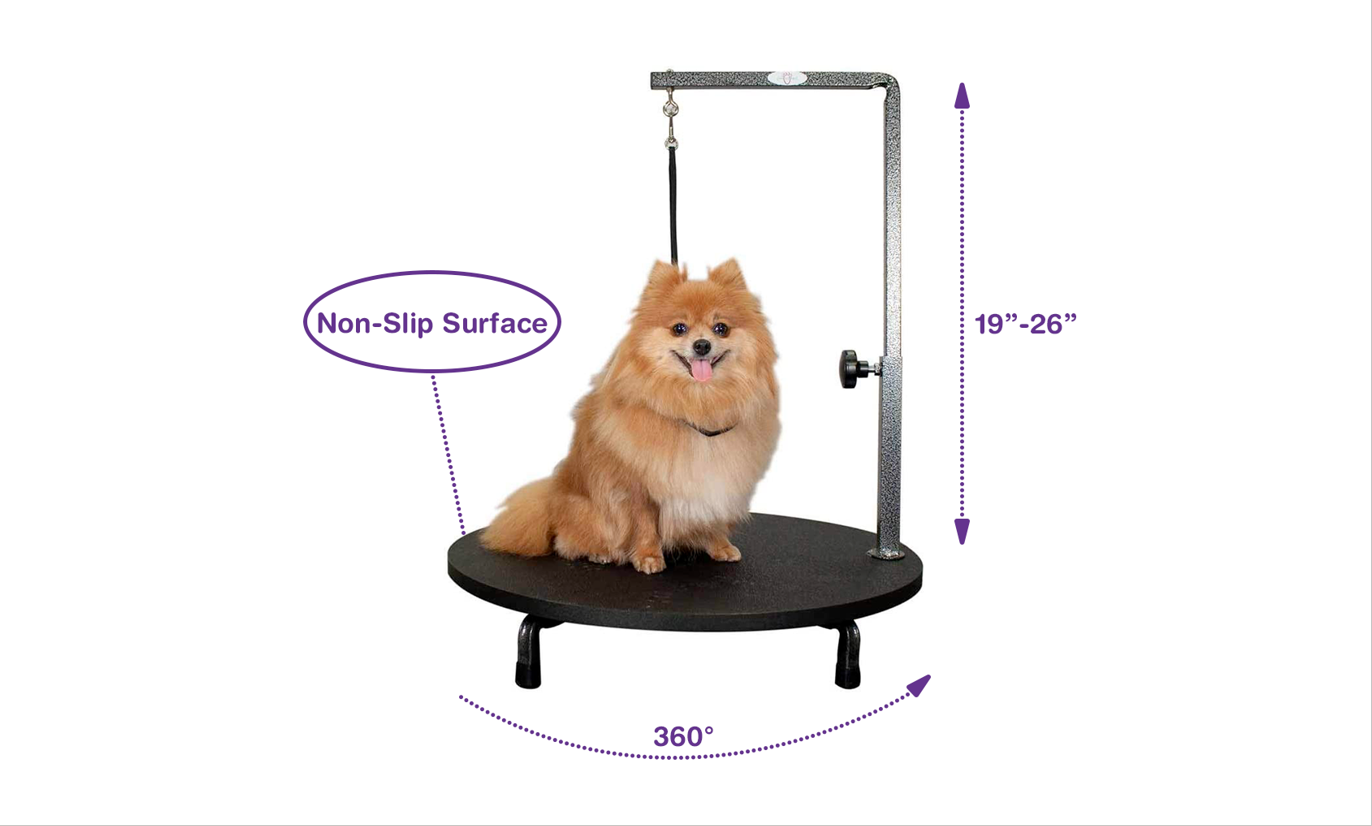 طاولة تزيين مستديرة للكلاب الصغيرة من Ryan's Pet Supplies Paw Brothers، ذراع ارتفاع قابل للتعديل، سطح طاولة دوار بقطر 60.96 سم، محطة تزيين للكلاب المالطية، والبكيني أحد أبناء بكين، والترير، والجراء