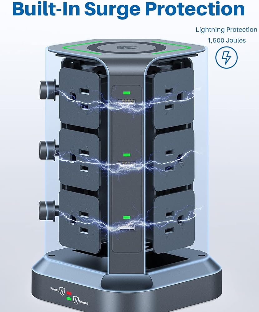 - ميزات السلامة: واقي من زيادة التيار بحد أقصى يصل إلى 1500 جول