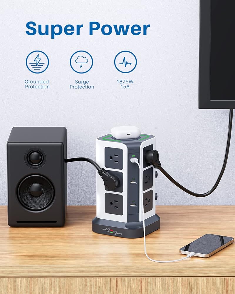- منافذ واسعة: تتضمن 12 منفذ تيار متردد متباعدة على نطاق واسع ومنفذين USB-C