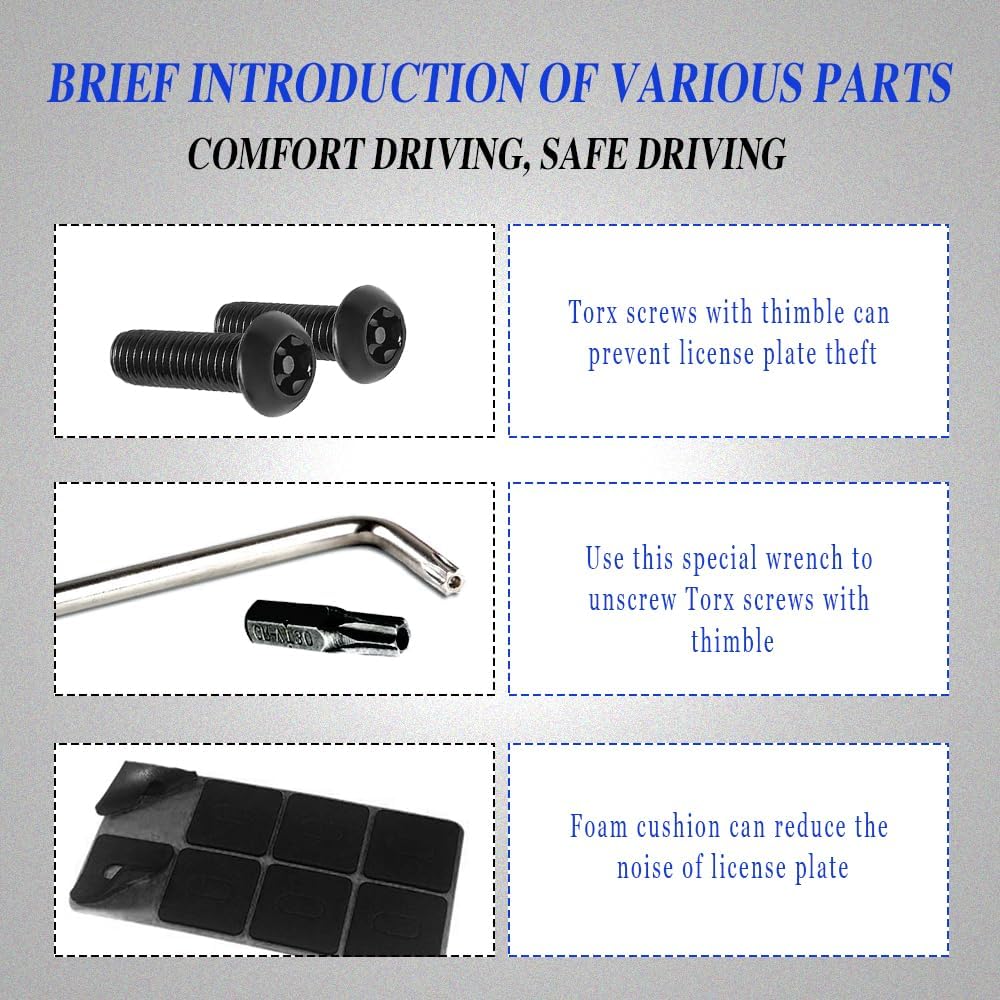 [Easy installation]: You only need to use the screwdriver included in this license plate screw kit to complete the installation, the installation process is very simple, does not require a lot of effort and time.