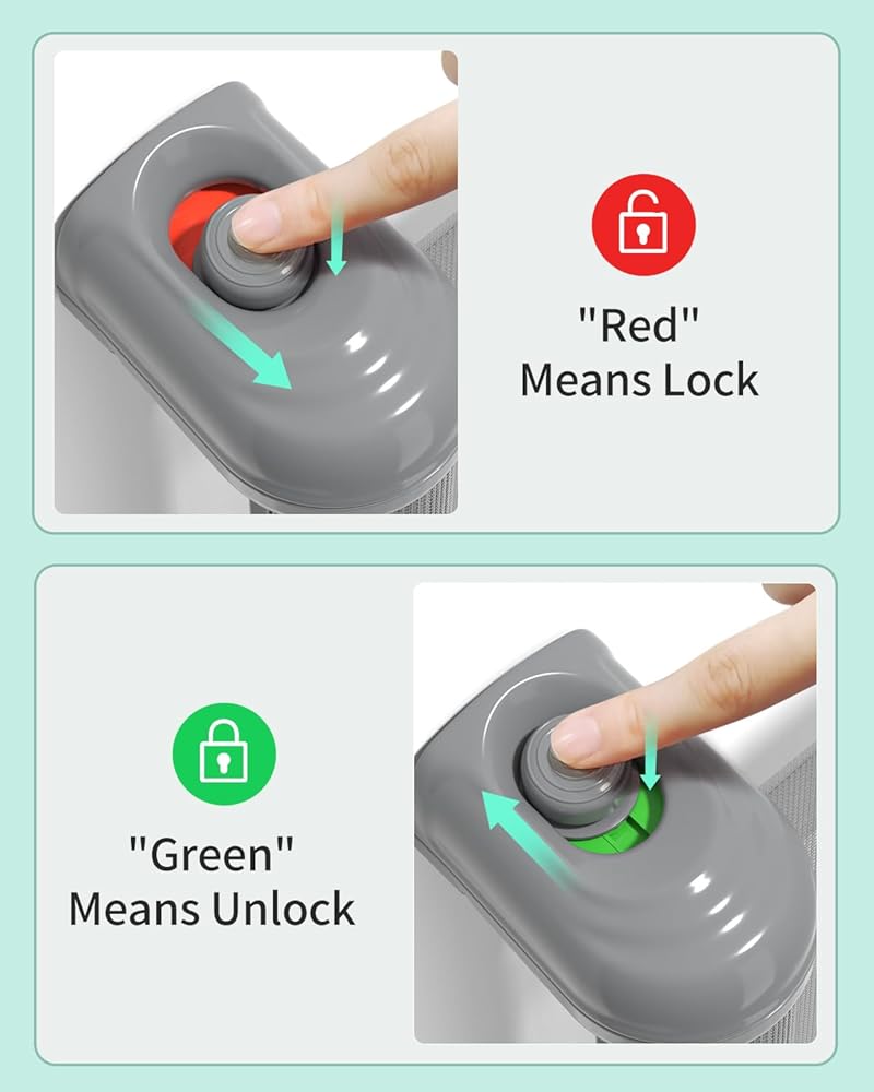 【ميزات أمان محسنة】تتميز بوابة الأمان بتذكير مرمز بالألوان عند قفل الباب. "الأخضر" يعني أنها غير مقفلة وجاهزة لتحرير الشبكة، بينما يشير "الأحمر" إلى أنها مغلقة بأمان. استمتع بسلامة الأسرة المعززة مع بوابة الأطفال من GROWNSY.