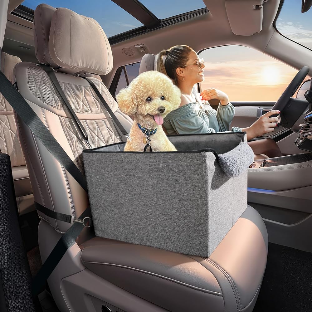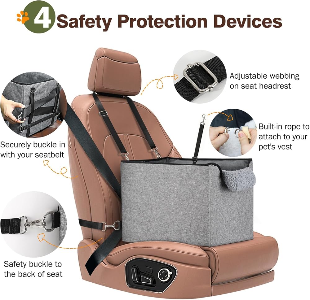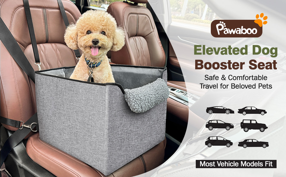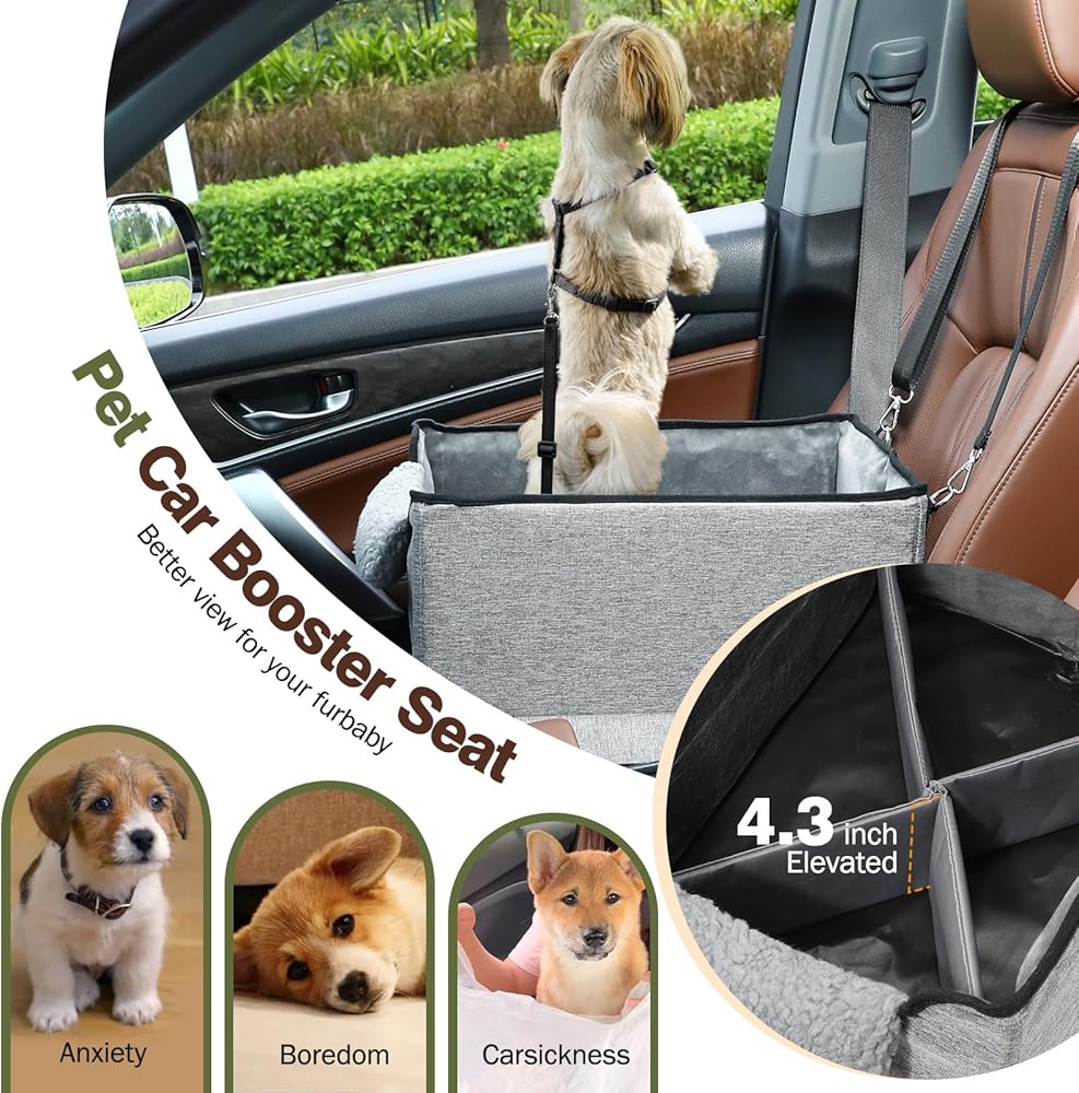 مقعد سيارة معزز للكلاب من باوابو للمقاعد الأمامية/الخلفية، مقعد سيارة صغير للكلاب يصل وزنه إلى 25 رطلاً، ارتفاع داخلي لمقعد السيارة للكلاب 5 بوصات، مثالي للسيارات وسيارات الدفع الرباعي والشاحنات - مريح وآمن، رمادي