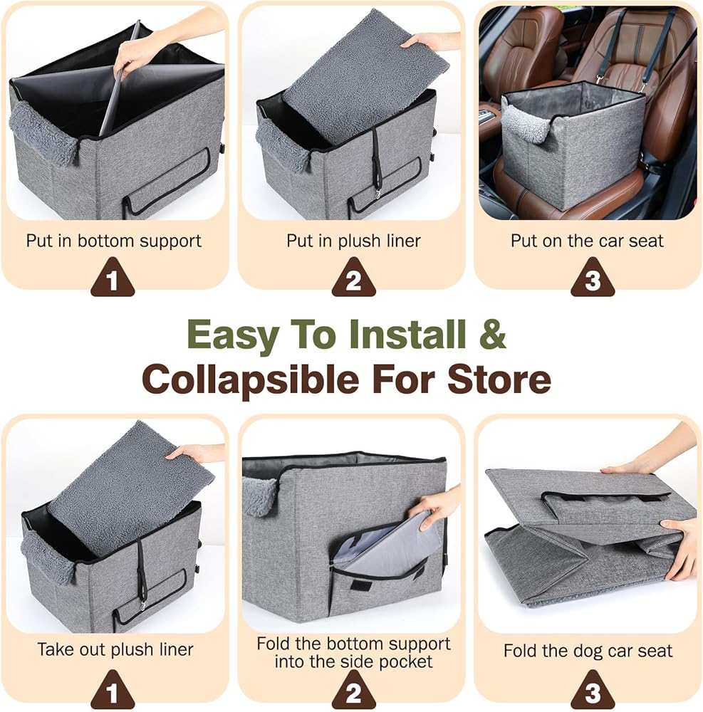 🚗【سهل التركيب والطي】تصميم مشبك قابل للتعديل سهل التركيب والإزالة. يمكن تثبيته بسهولة باستخدام ثلاث طرق تثبيت مختلفة: مسند الرأس، وحزام أمان السيارة، والحزام حول مسند الظهر. تم تصميم المقعد المعزز لسيارة الكلاب بحيث يمكن طيه بسهولة، ويمكنك استخدام الجيب المنظم الجانبي لتخزين لوحات الدعم X في حالة عدم الاستخدام.