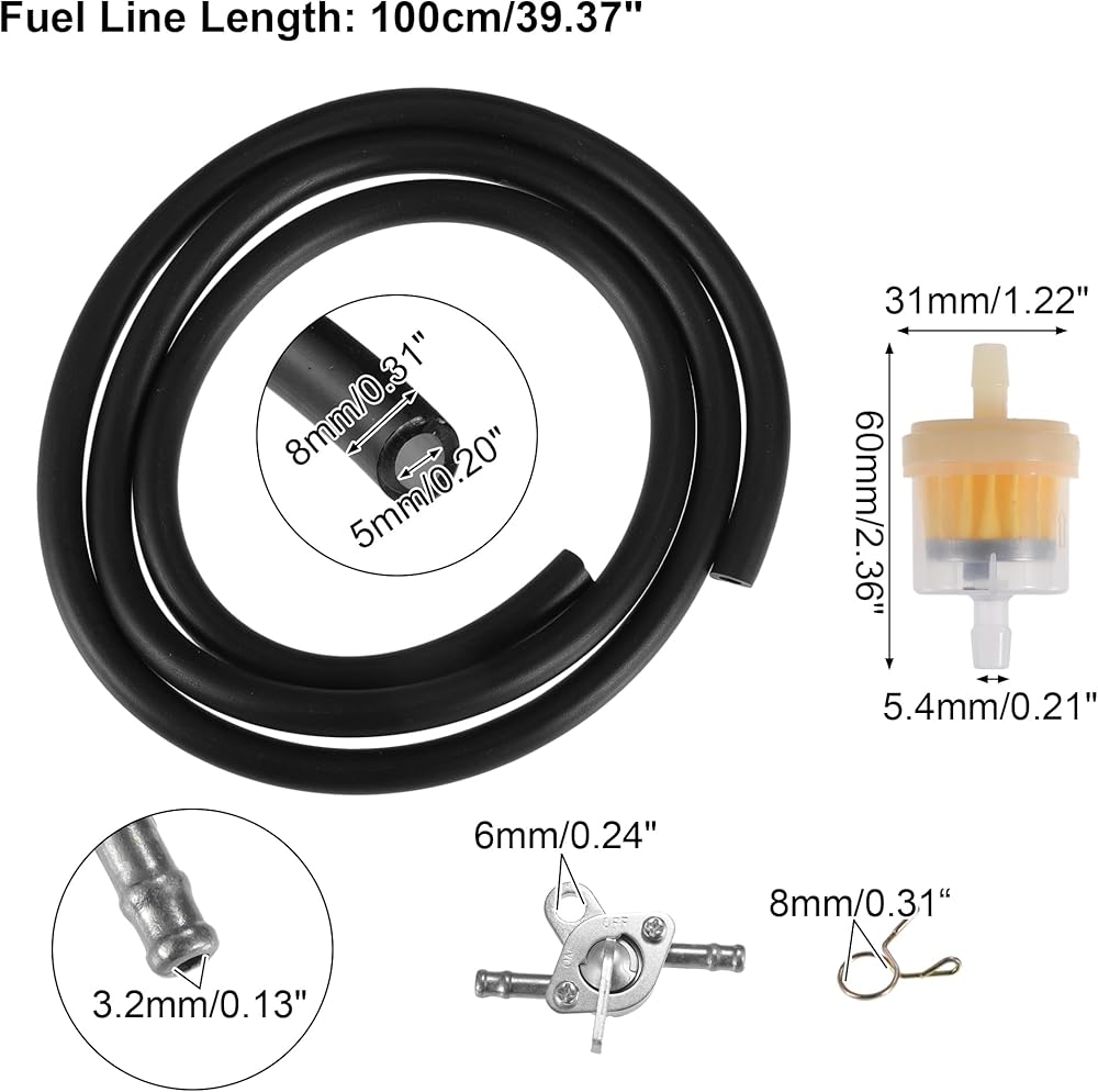 X AUTOHAUX 1 مجموعة دراجة نارية خط الوقود خرطوم المشابك مرشحات الوقود مع 2 مضمنة إغلاق صمام بيتكوك ل CRF50 70 90 150CC ATV الدراجة سكوتر الترابية دراجة سوداء