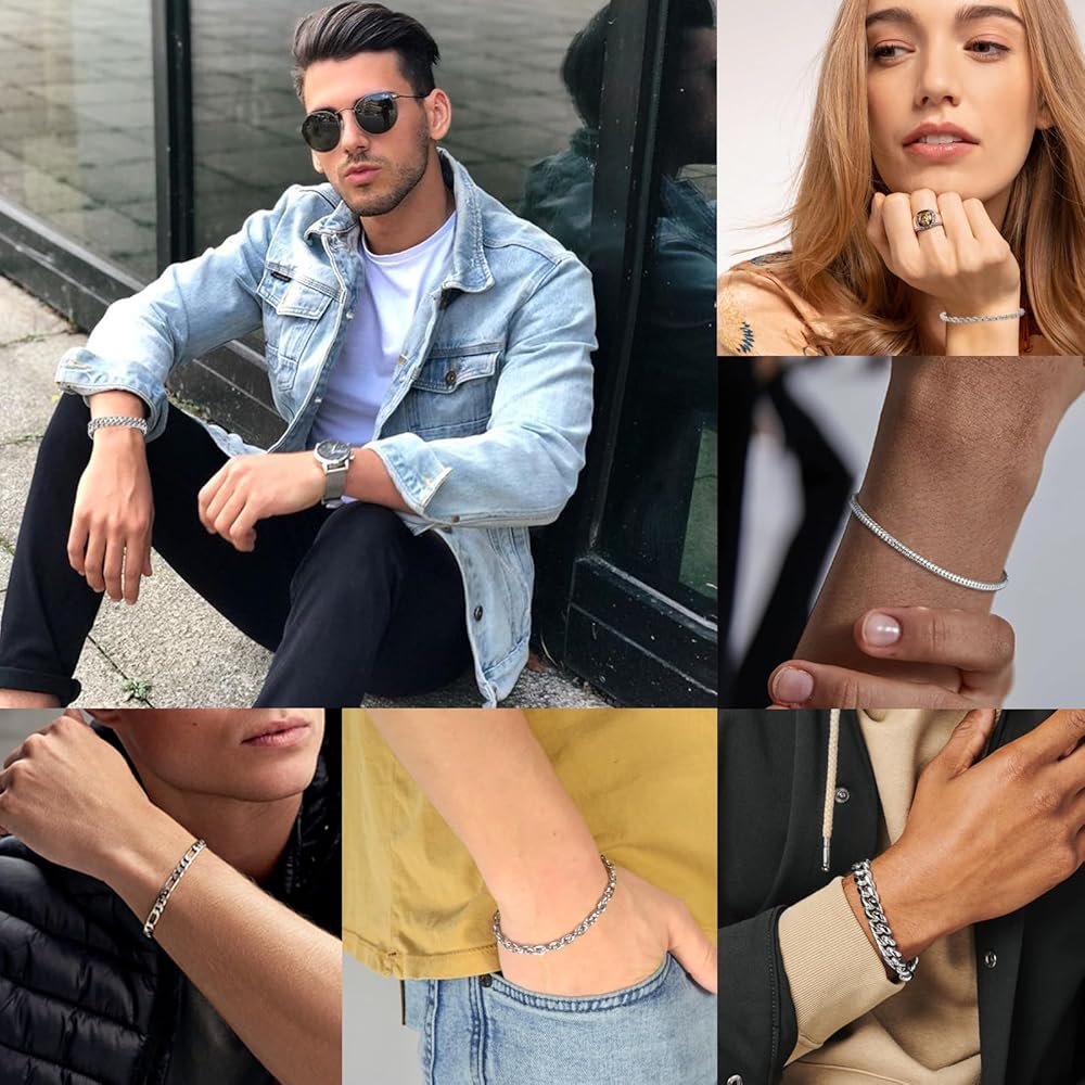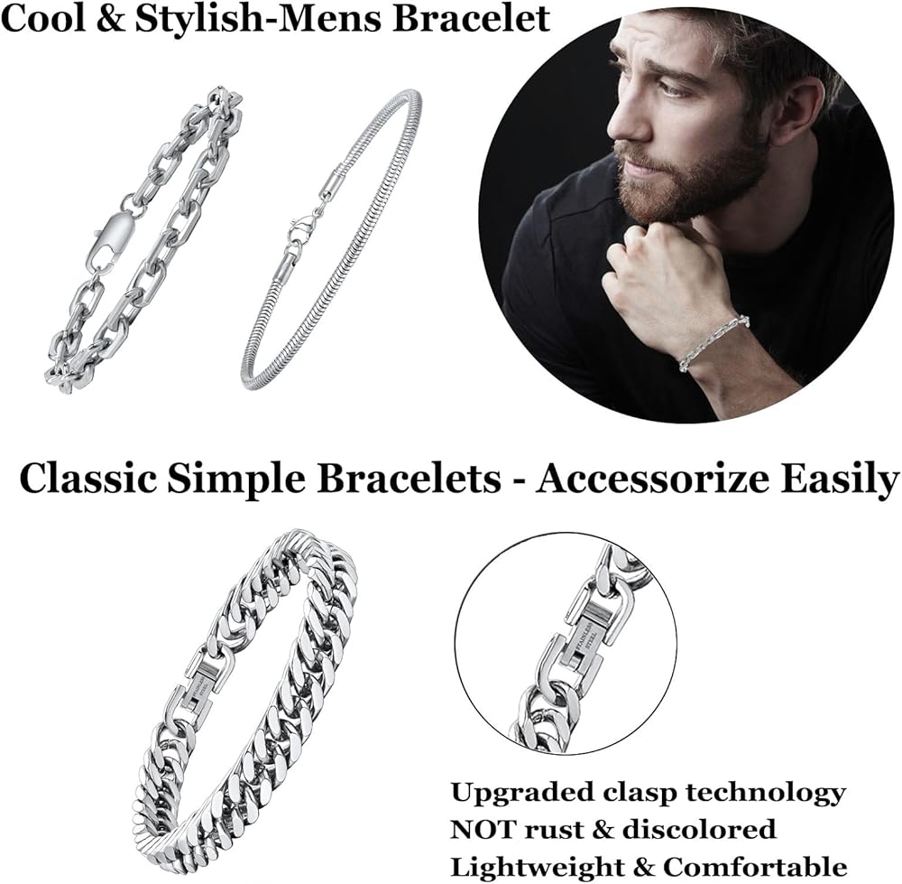 【ترقية المشبك】هذا السوار الرجالي مصنوع من الفولاذ المقاوم للصدأ المضاد للحساسية، صلب ومريح. تقنية المشبك المطورة لضمان استخدام يدوم لفترة أطول، ولا تسبب تهيج الجلد. المقاس 7.5/8.3 بوصة، الحجم الصحيح لضمان أنه يناسب معصمك تمامًا.