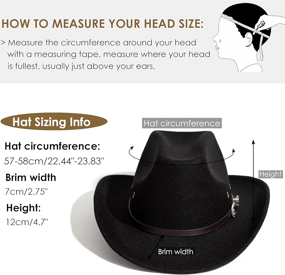 • مقاس قبعة راعية البقر: محيط القبعة: 57-58 سم/22.44-23.83 بوصة، عرض الحافة: 7 سم/2.75 بوصة، الارتفاع: 12 سم/4.72 بوصة، مصنوعة من 65% قطن، 35% بوليستر. مريحة للارتداء طوال اليوم.