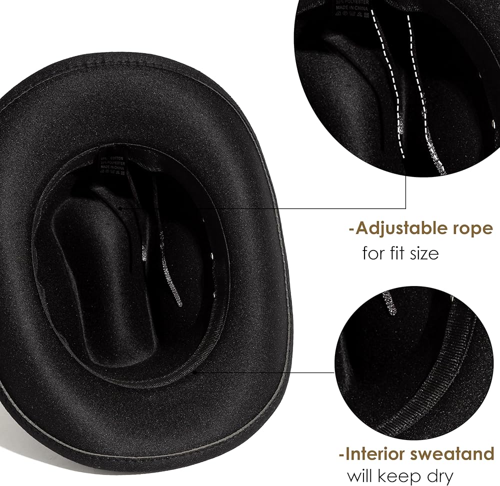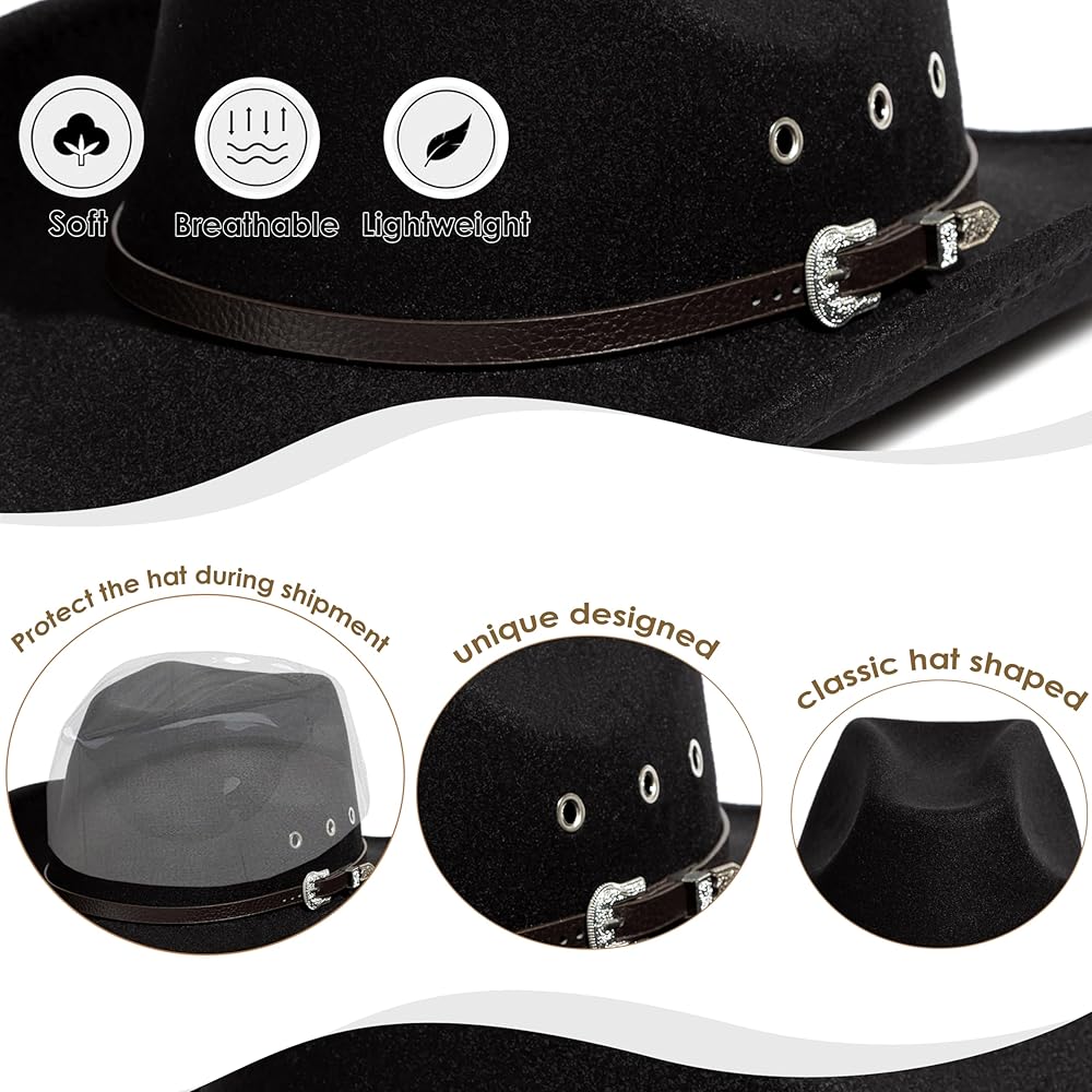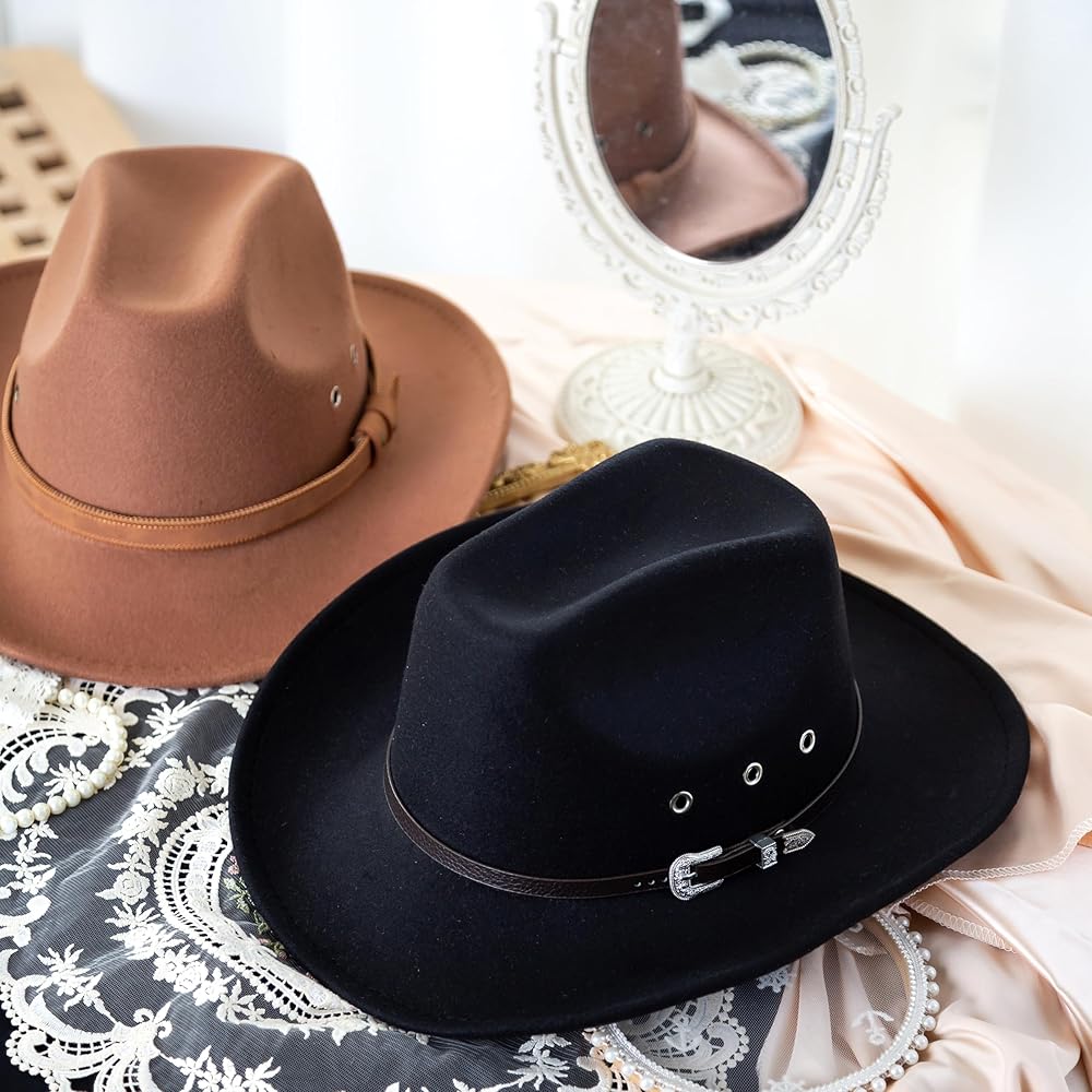 • خامة رائعة: قبعة رعاة البقر الكلاسيكية مع إبزيم حزام وحزام جلدي معدني على الطراز الغربي لمساعدتك على تصميم ملابسك مثل راعية البقر/راعية البقر الغربية الحقيقية.
