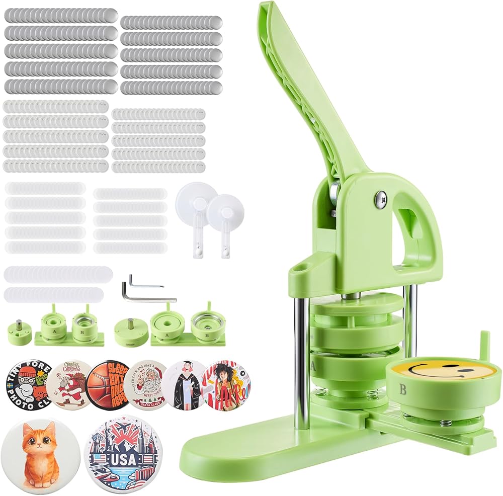 آلة صنع الأزرار VEVOR، 1.25/2.25 بوصة 2 في 1، صانع دبابيس بلاستيكية مع 200 قطعة من أجزاء الأزرار، قاطع دائرة وكتاب سحري، مقبض مريح معزز، لشارات DIY، دبابيس مخصصة، أخضر