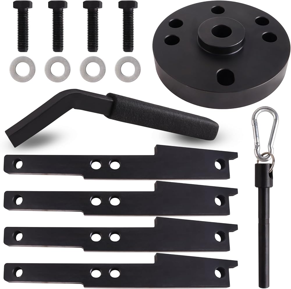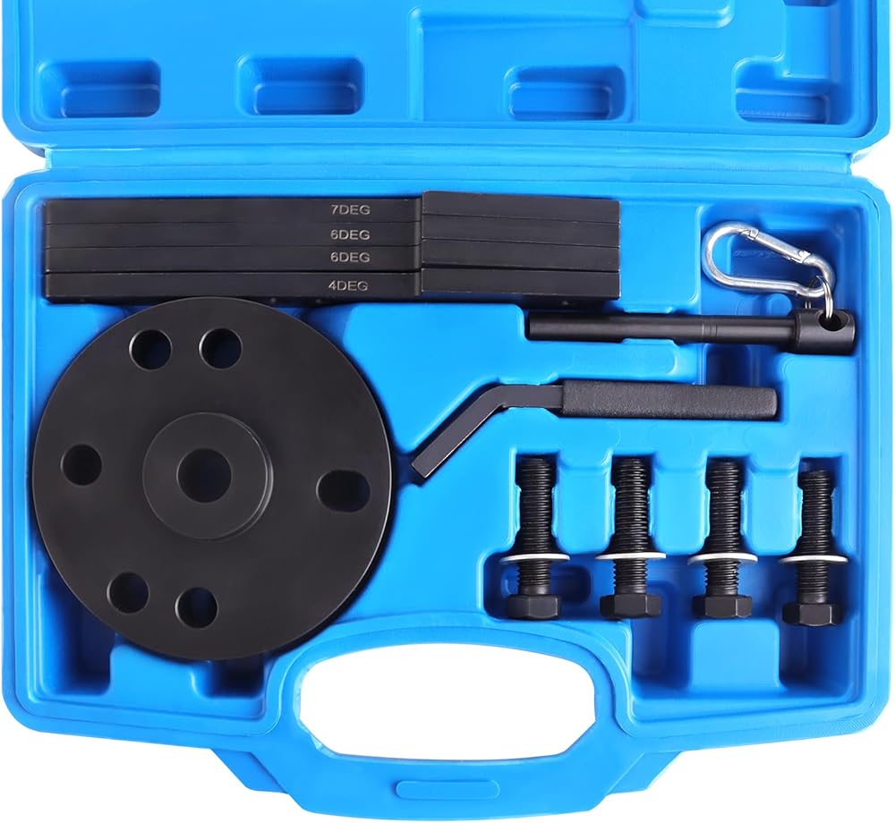 The cam timing tool kit is made of high-quality 45# carbon steel with black anodized, black non-slip PVC coated handle, durability and anti-corrosion. High precision and hardness to provide a much longer service life.