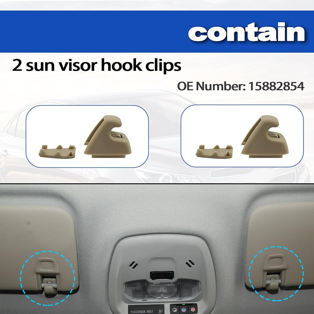 2 حزمة من مشابك حاجب الشمس، مشابك تثبيت حاجب الشمس للاستبدال التلقائي لحاجب الشمس لسيارة تشيفي سيلفرادو 1500، تاهو، جي إم سي سييرا 1500، يوكون 2007-2013 (بيج)