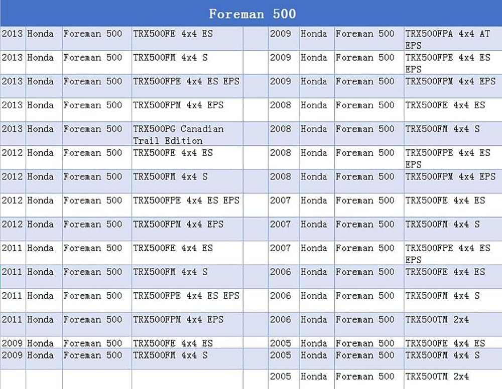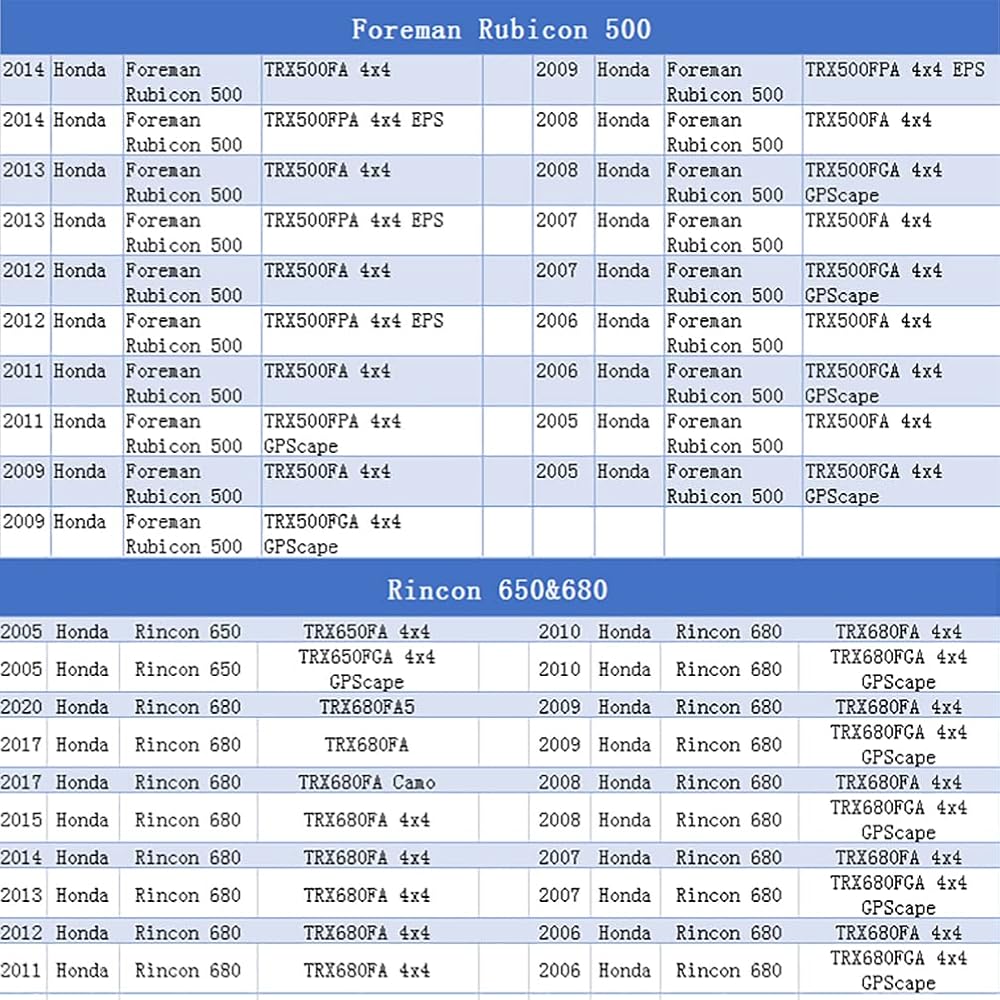 - Fitment: for for Honda TRX 500 650 680 2005 2006 2007 2008 2009 2010 2011 2012 2013 2014 2015 2017 2020