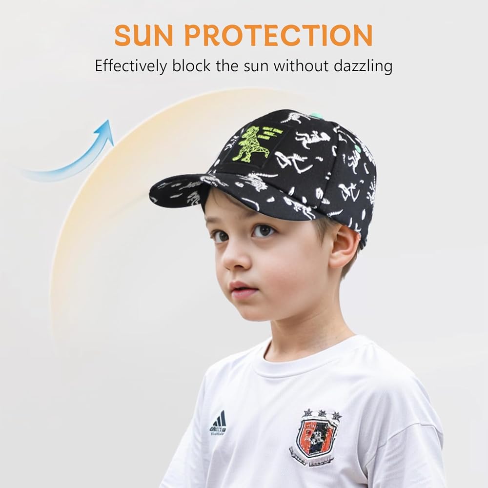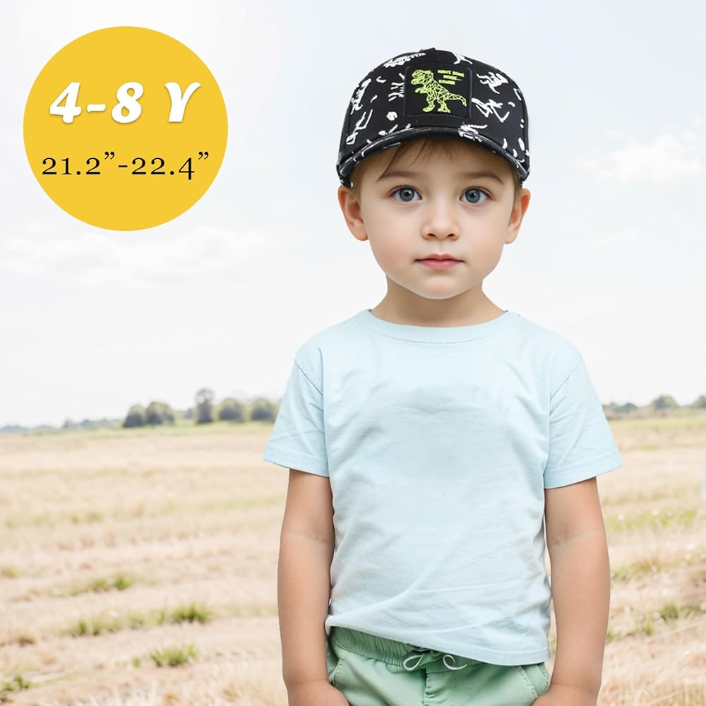 【مقاس واحد يناسب معظم الأشخاص】قبعة البيسبول للأولاد مجهزة بشريط سحري قابل للتعديل. مصممة خصيصًا للفتيات والأولاد من سن 4 إلى 8 سنوات. مناسبة للأطفال الذين يتراوح محيط الرأس بين 21.2 و22.4 بوصة.