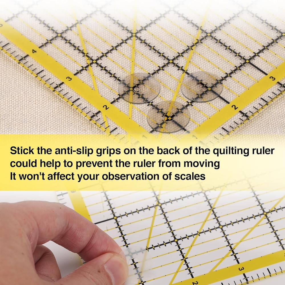 Receive 6 quilting rulers and 50 non-slip rings, including 3 clear squares and 3 clear rectangles in different sizes.